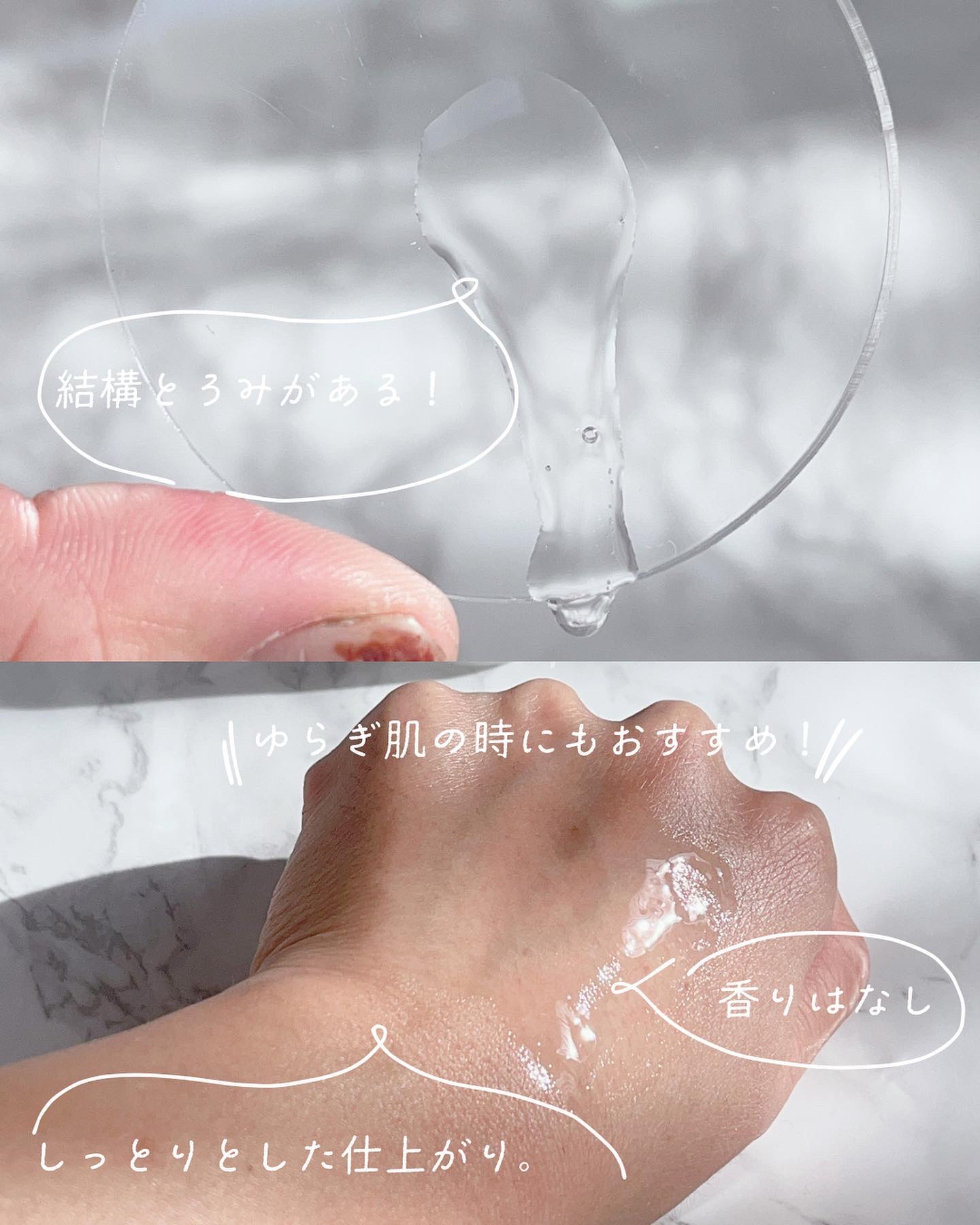 | とろみのあるテクスチャーだけど、肌にのばすとさらっとしていてみずみずしい使用感だよ☺️ | 詳細を見る | ||