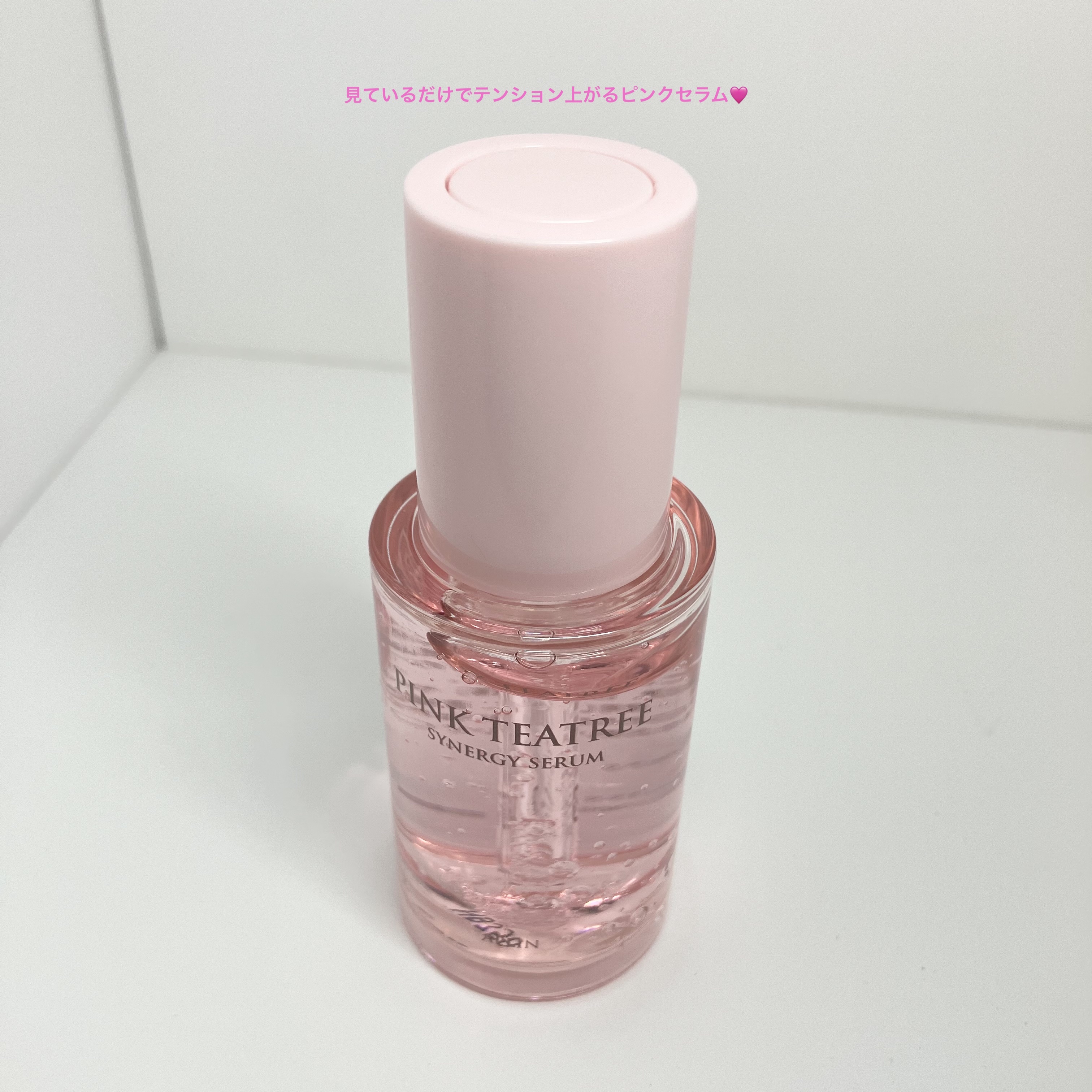 ピンクかわいいーーー! ってなるこのセラム🫶🏻 かわいいだけじゃ無いんです! 保湿成分のティーツリーやツボクサエキスなどのCICA成分や他にも優しいGREEN成分がたくさん! ほどよくとろみがあって、保湿感もあるんだけど重くない。