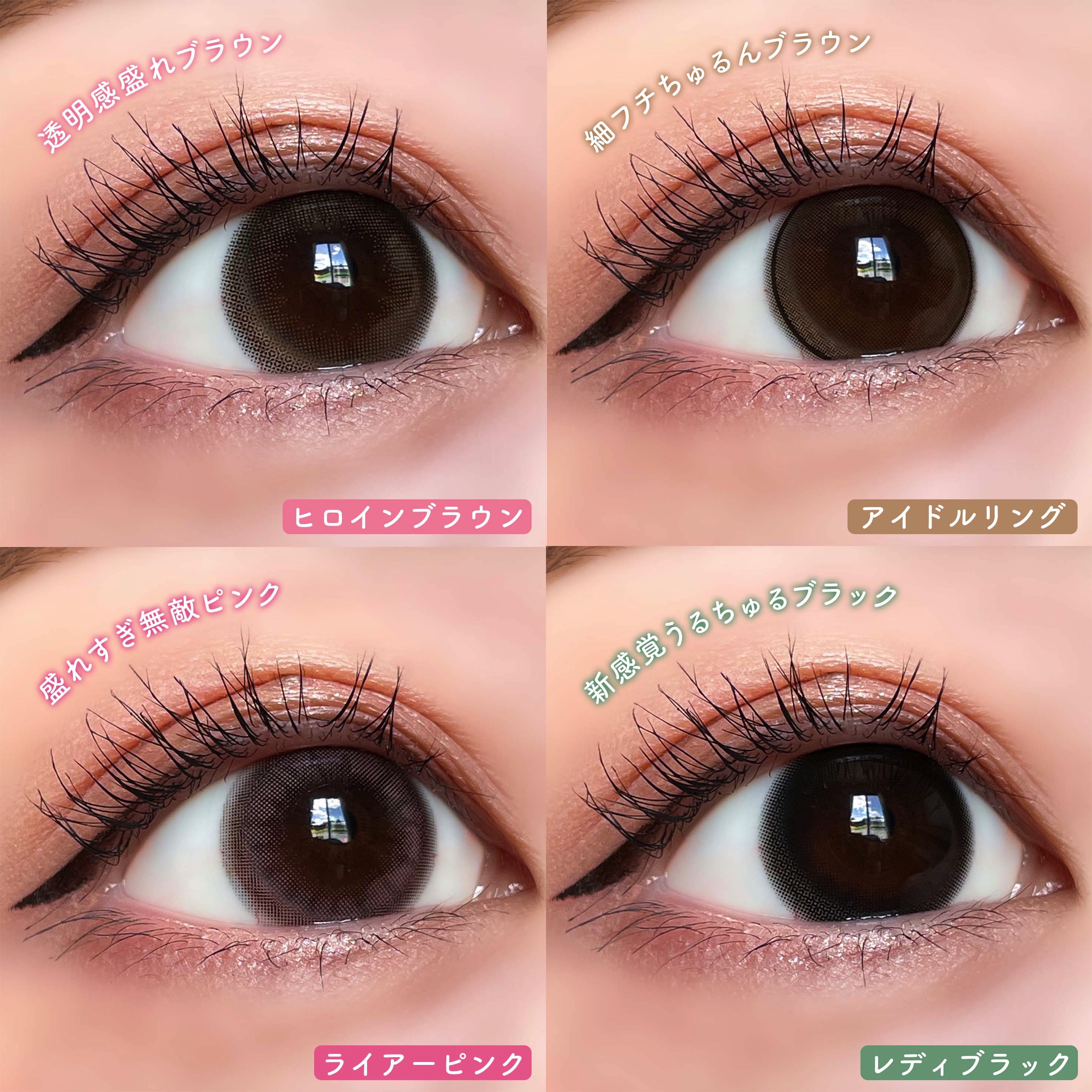 - ※2025年6月以降、商品パッケージ裏面・側面の一部表記を順次変更いたします。尚、これにかかる商品の交換・返品は承っておりません。 ヒロインの瞳の法則♡ ナチュラルなのにしっかり盛れるDIA14.5mm! ■ヒロインブラウン 透明感たっぷりなブラウンレンズ。瞳に馴染む色だからとってもナチュラル。 ■アイドルリング さりげない細フチとちゅるんブラウンがナチュラルに瞳を強調♡ ■ライアーピンク ピンクブラウンのフチとムラのあるデザインで立体感のあるきらきらな瞳を演出♡ ■レディブラック じゅわっとぼかした繊細なデザインで透明感に満ちた存在感のある瞳を演出♡ ■プリンセスショコラ しっかり太フチとあまくとろけるショコラブラウンでプリンセスみたいに愛される瞳に♡ ■スターグロー くりっと盛れる太フチとうるみツヤめく水光カラーで光を取りこむキラツヤな瞳に♡ ■Maria Ring(マリアリング) 絶妙細フチと白っぽ透明感グレージュでちょっぴり背伸びした余裕仕込みレンズ♡ ■Mermaid Ring(マーメイドリング) 絶妙太フチときらめき透明感マーメイドグレーでピュアにうるめく美少女な瞳に♡ カラーコンタクトレンズの不適正使用による眼障害の危険性等などがあります。 ●コンタクトレンズは高度管理医療機器です。不十分な洗浄・消毒など不適切なケアや、長時間・交換期間を超えた装用により、アレルギー性結膜炎、角膜感染症、角膜潰瘍等の重篤な眼障害が発生する危険性があります ●ご使用前に取扱説明書を確認してください 使用上の留意事項 ●眼科医院等を受診してからお求めください ●眼に異常を感じたら直ちにレンズ使用を中止し、お近くの眼科等で診察を受けてください ●医師の指示にしたがってご使用ください ●コンタクトレンズを装用する場合、自覚症状がなくても、眼科医院等での定期検査を受けてください ●レンズに不具合がある場合は使用しないでください