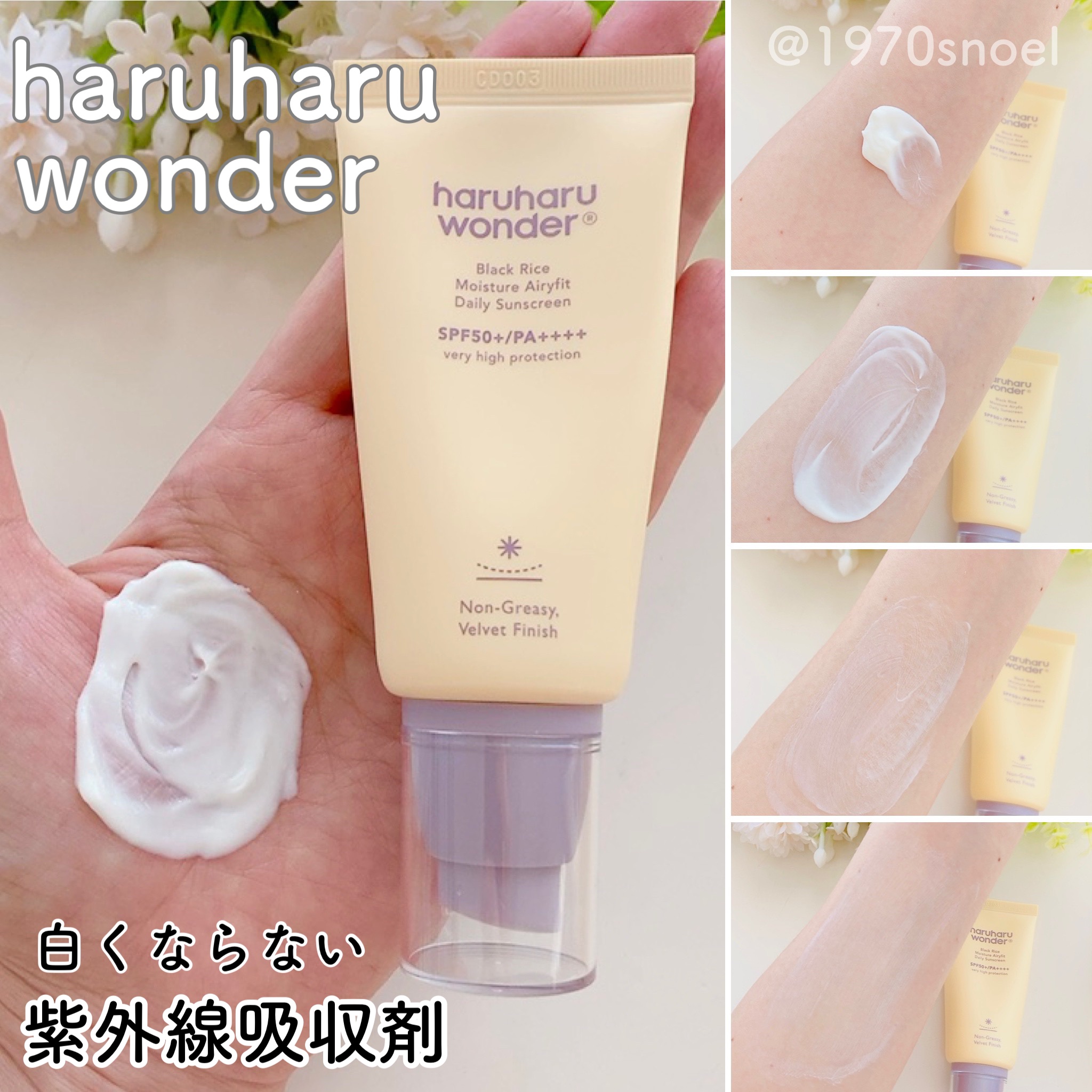 ハルハルワンダーさまよりいただきました💗..ハルハルワンダーで現在発売中のサンカットアイテムをお試しさせていただきました☺️ブラックライスピュアミネラルリリーフデイリーサンスクリーンは、ナチュラルにトーンアップする乳液タイプの日焼け止め。べた...
