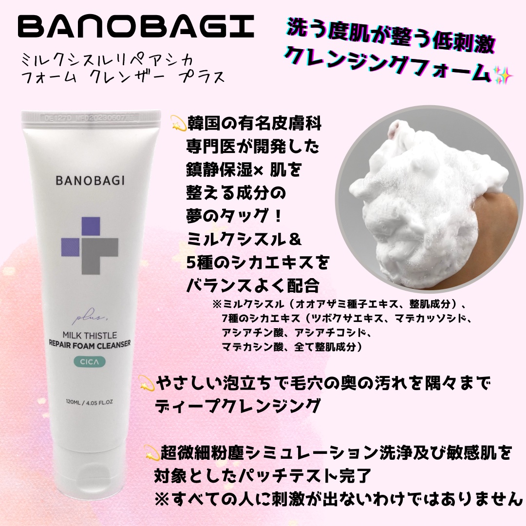 韓国の皮膚科医が開発したドクターズコスメ📝 バノバギ、皆使ったことある?👀✨ 全ての製品でドイツのダーマテスト最高等級を獲得しているんだそう✨ ミルクシスルラインは薬用植物として知られるオオアザミ、ミルクシスルエキス(オオアザミ種子エキス)をメイン成分に作られたスキンケアライン☘️