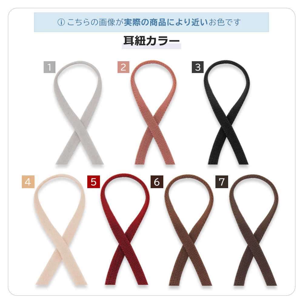 呼吸しやすく、長時間つけていても快適に過ごすことができます。 メイクや口紅などがつきにくく、お肌にも優しい! 耳の紐の部分も太めになっているので長時間つけていても耳などが擦れて痛くなりにくいのも助かります。