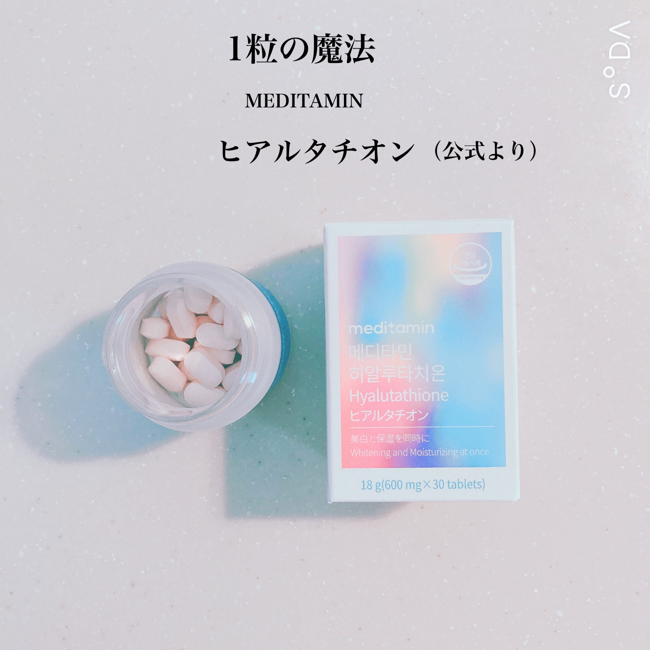 韓国発のサプリメント ヒアルタチオン🩵 9つの美容成分🩵 ヒアルロン酸・グルタチオン・NMN。 味も匂いも感じず、1回1錠なのでスムーズに飲むことができました! 楽天市場でクーポンが配布されているそう!韓国のサプリメントに興味ある人は要チェック✔️