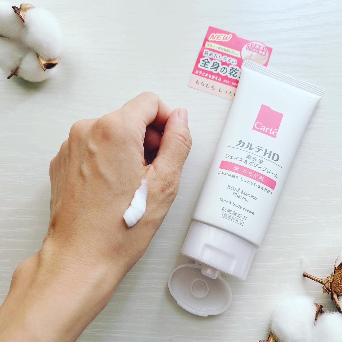 - 【全身用高保湿クリーム】 コーセーとマルホの合弁会社コーセーマルホファーマから発売された「カルテHD」。マルホから唯一供給を受けた「ヘパリン類似物質HD」を配合。 ゴワついたあれがちな肌にもピタッと密着、もっちりなめらか肌に導く全身用高保湿クリーム。 ひじ・ひざ・かかとなど気になるパーツにもピタッと密着してシールドできる「ワセリン」や「ピタッと保護膜オイル」を高配合。 それでいてのびの良いオイルとバランスよく組み合わせているから、腕やすねなどの広い範囲にもスーッと軽やかにのばせます。 フェイス&ボディローションと共通の「肌やわらかオイル」も配合。 濃厚なうるおいで肌をしっかり包み込みながらべたつかない使い心地です。