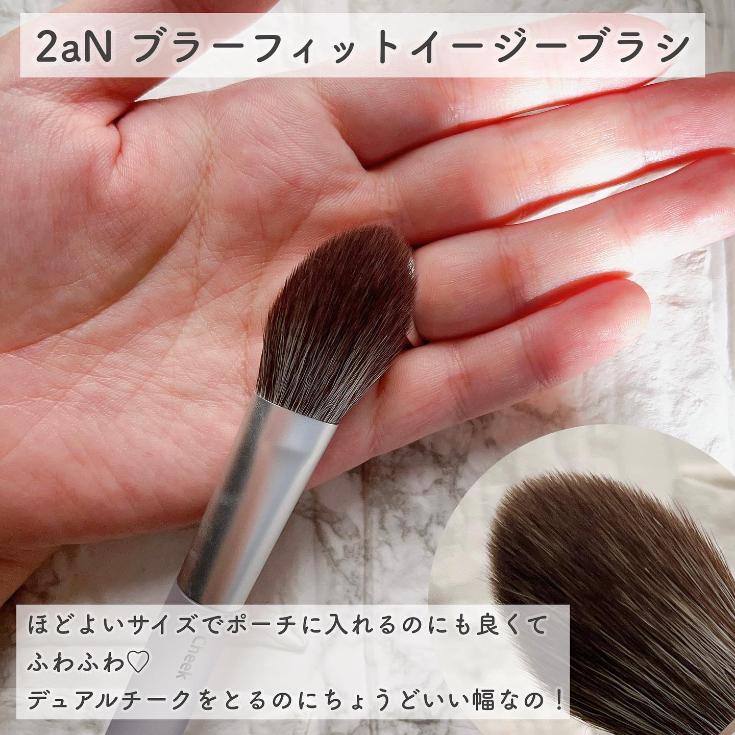 そんな2aNのチーク、チークブラシ、クッションファンデを使ってみました〜😍🫶💓 どのカラーもとっても可愛い色味。2色セットだから立体感あるチークを楽しむことも◎🫶💓 私のお気に入りはピンクペタル✨️ 久しぶりに可愛い色味のピンクチーク使ったー🥰🥰🥰 次にブラーフィットイージーブラシ✨️ チークを柔らかく、ふんわり入れる事ができるよ🙆♀️💓 程よいつき加減が絶妙✨️ ふわっふわで柔らかいブラシなのも特徴😍😍 クッションファンデは私は#21ライトベージュ が丁度いいカラーでした🥰💓 ツヤ肌仕上がりが楽しめるよ✨️ コンパクトのギラギラ感がすごい!!🙄🙄 キラキラ好きな人にオススメ🥰🥰🥰