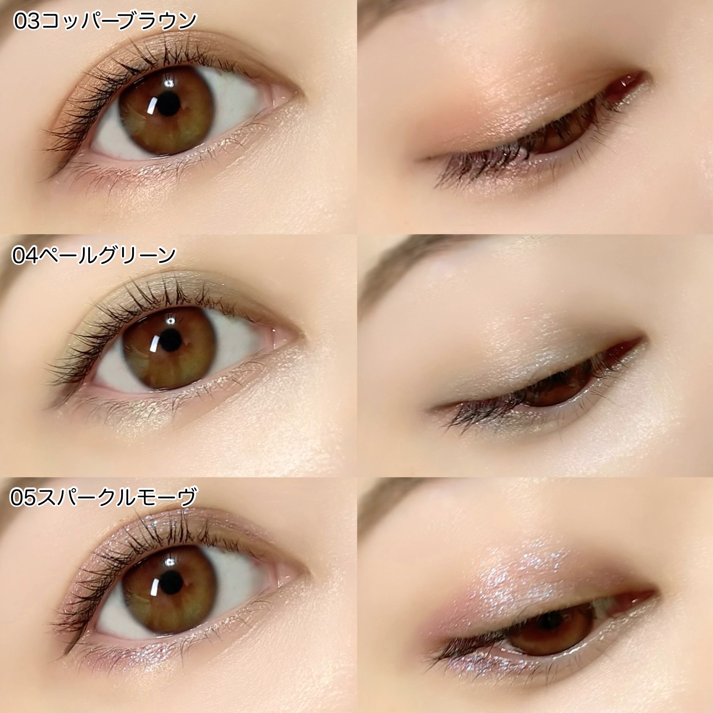 | スルスルなめらかな塗り心地なのに、 目元にピタッと密着!! 指でゴシゴシ擦っても かなーりヨレにくいから、 二重の溝にも溜まりにくいし ラメ飛びしにくい◎ | 詳細を見る | ||