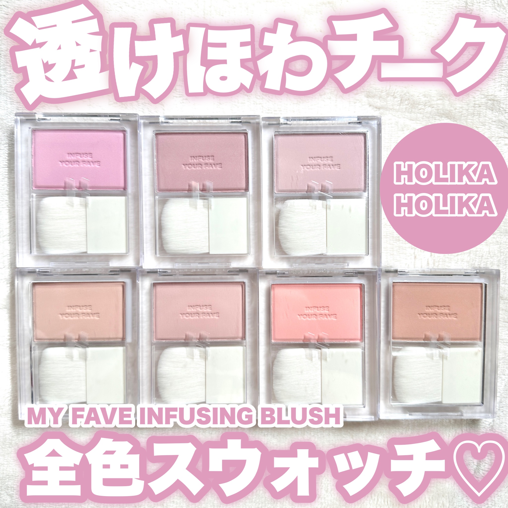 ..HOLIKAHOLIKAのチークが可愛すぎるから見て😭💗💗MYFAVEINFUSINGBLUSH🍒毛穴カバーチークとも呼ばれてるよ🫶粉飛びしにくくて、ふわふわ透明肌があっという間に作れちゃうの😍カラーは10色🌈・01INNOCENCE・0...