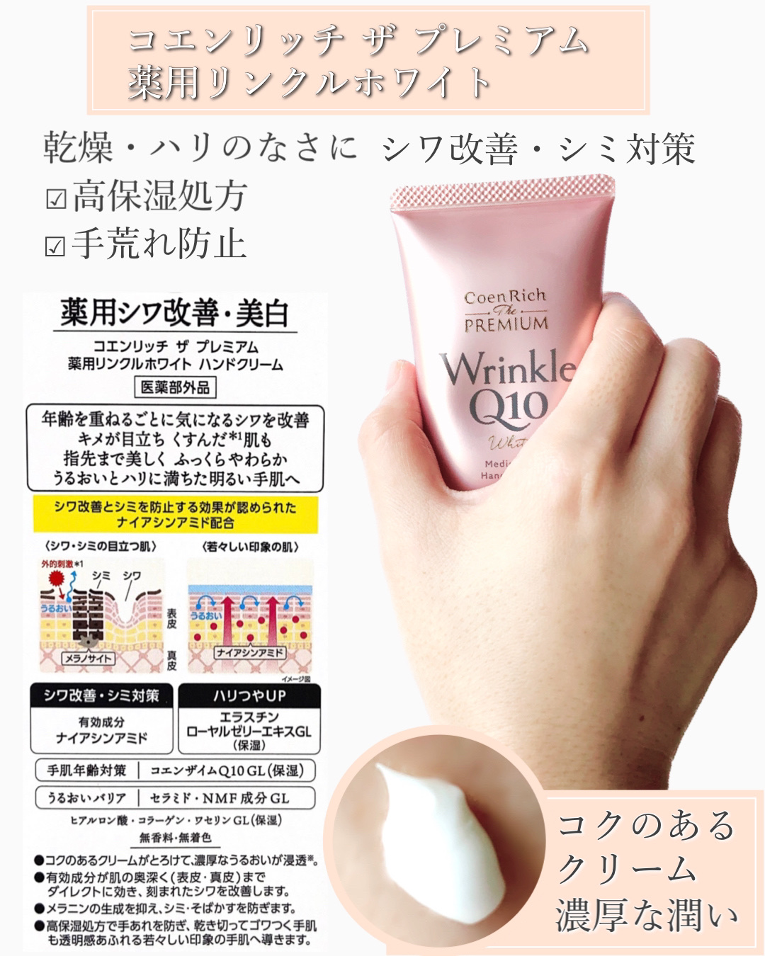 コエンリッチQ10 コエンリッチ ザ プレミアム 薬用リンクルホワイト ハンドクリーム | 880円(編集部調べ) |