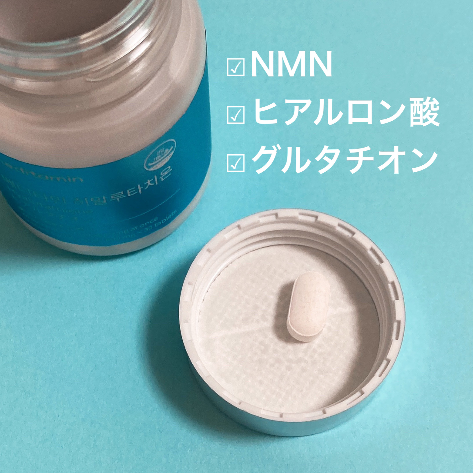 ヒアルロン酸、グルタチオン、NMNなど、美容に嬉しい成分をたっぷり配合!肌の水分保持と抗酸化作用であらゆる肌悩みをケアしてくれます。 1日1粒でOKなので、手軽に続けられます。粒が大きすぎないので飲みやすく、味にクセがある感じでもないです。 Qoo10などのオンラインショップで購入できるのでぜひチェックしてみてください。