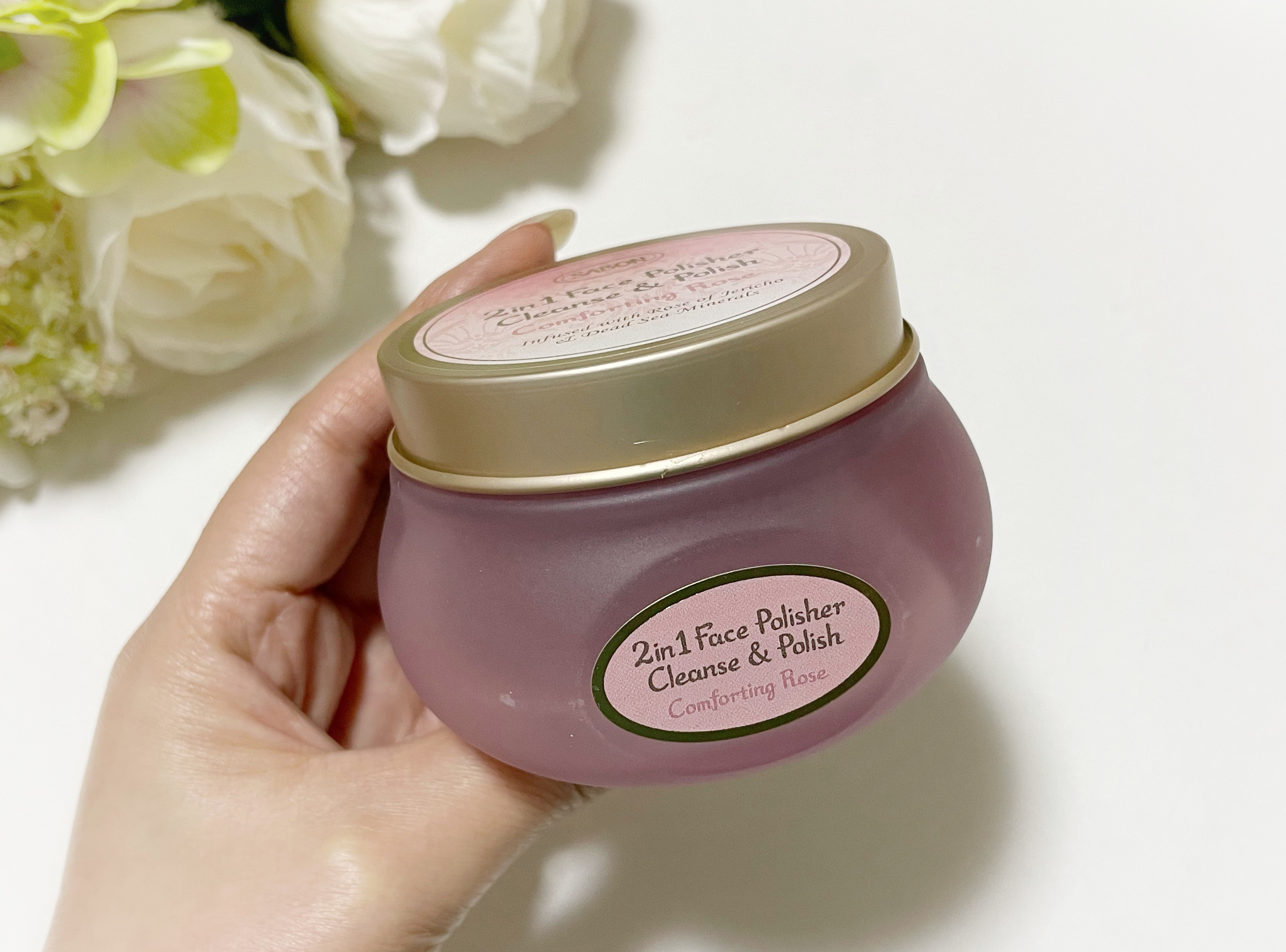 🌹SABONフェイスポリッシャーコンフォーティング・ローズとろけるジェル状の洗顔+スクラブの2in1タイプ✨乾いた肌にのばして使うので、液だれせずピタッと密着。ジェルの中に入ったホホバ由来のスクラブ粒子が、肌を傷つけにくくやさしく角質ケアして...