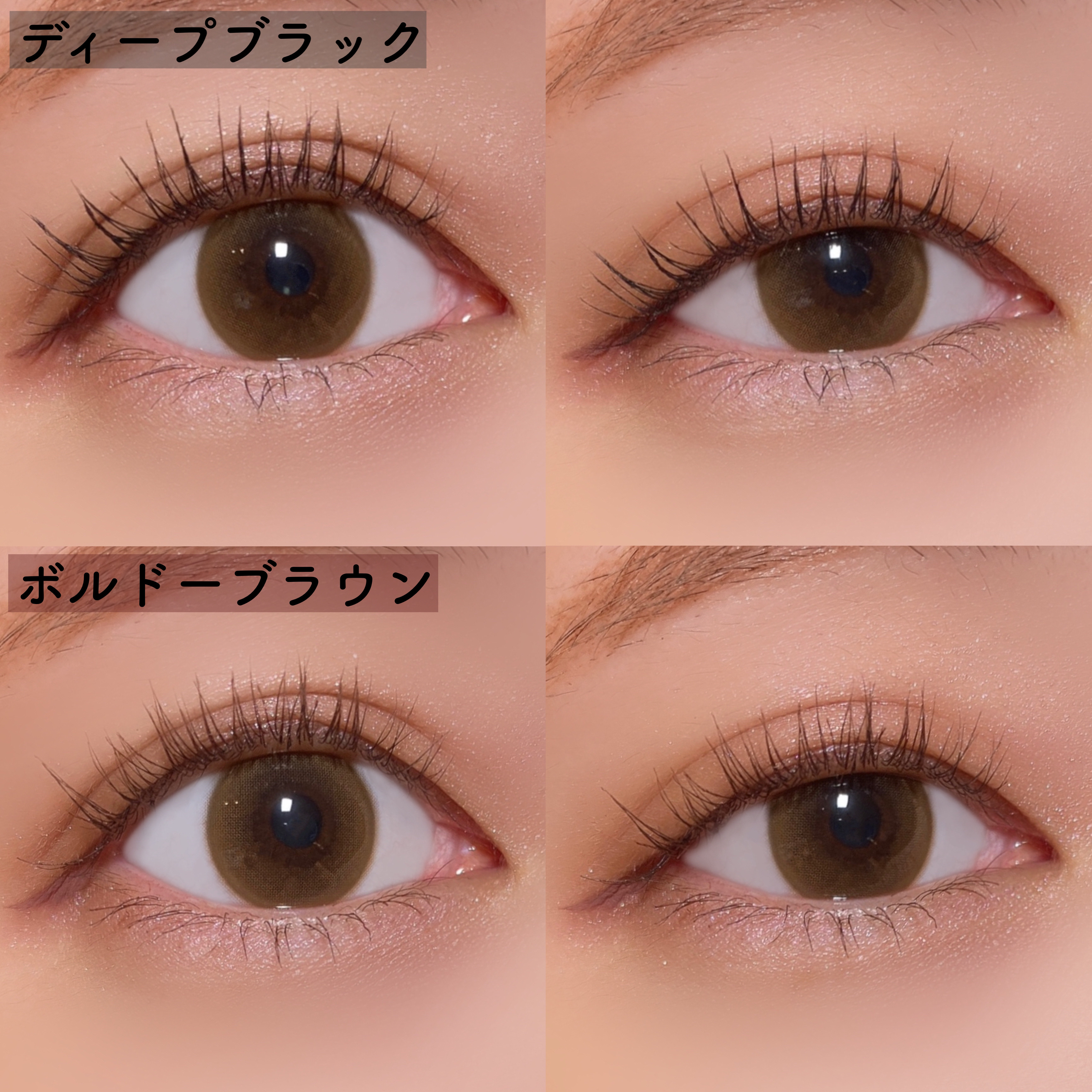 ロングタイプもボリュームタイプも、ブラック・ブラウン共に色味はかわりません。同じ色です😌 ブラックはクリアな発色のブラック。 透明感があるのでナチュラルで、圧迫感がないです☺︎ ブラウンは赤みがおさえられた、まるでミルクチョコレートのようなやわらかいカラー🍫♡ 優しい目元に仕上げてくれます⑅⃝︎ ロングタイプは、ブラシがカーブしてるの! このブラシのカーブは、アジア人の目元に合わせて作られているそうで、とってもぬりやすい! ボリュームタイプは、ストレート型のブラシ。 ナチュラルな束感がでる😌 マスカラの液がロングタイプとボリュームタイプで若干違う気がしました! ロングタイプの方がサラッとしてて、ボリュームタイプの方がもちっとした感じがしたよ😳 ロングタイプ、ボリュームタイプも共通してカールキープ力◎ しっかりカールキープしてくれるけど、まつ毛がカチッとかたまらず、ふんわりやわらかい💗 そしてどちらも、ブラシが細くて目頭とか下まつげとかも塗りやすいし、重ねてもダマになりにくい✨