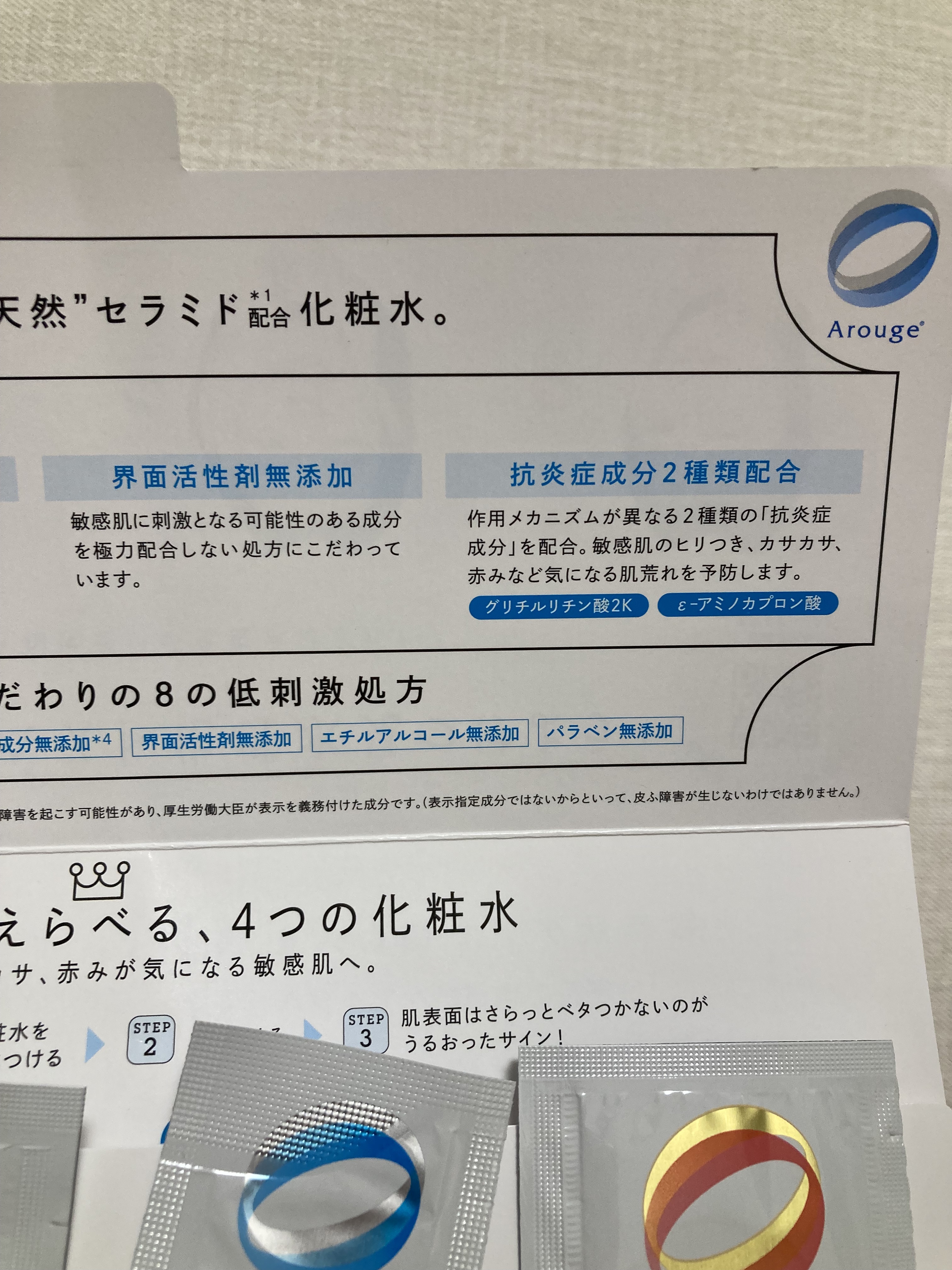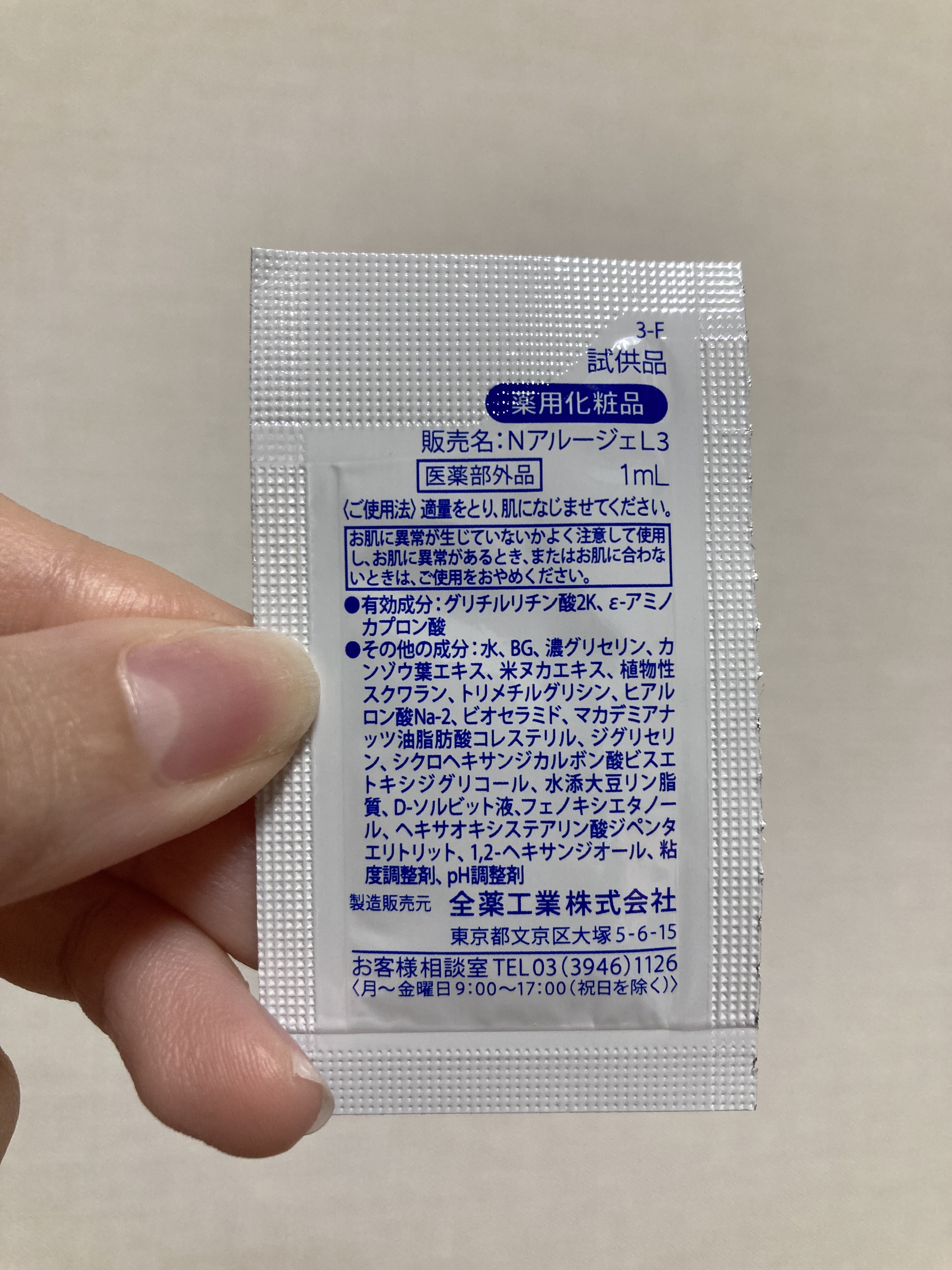- [有効成分] グリチルリチン酸2K、ε-アミノカプロン酸 [その他の成分] 水、BG、濃グリセリン、カンゾウ葉エキス、米ヌカエキス、植物性スクワラン、トリメチルグリシン、ヒアルロン酸Na-2、ビオセラミド、マカデミアナッツ油脂肪酸コレステリル、ジグリセリン、シクロヘキサンジカルボン酸ビスエトキシジグリコール、水添大豆リン脂質、D-ソルビット液、フェノキシエタノール、ヘキサオキシステアリン酸ジペンタエリトリット、1,2-ヘキサンジオール、粘度調整剤、pH調整剤