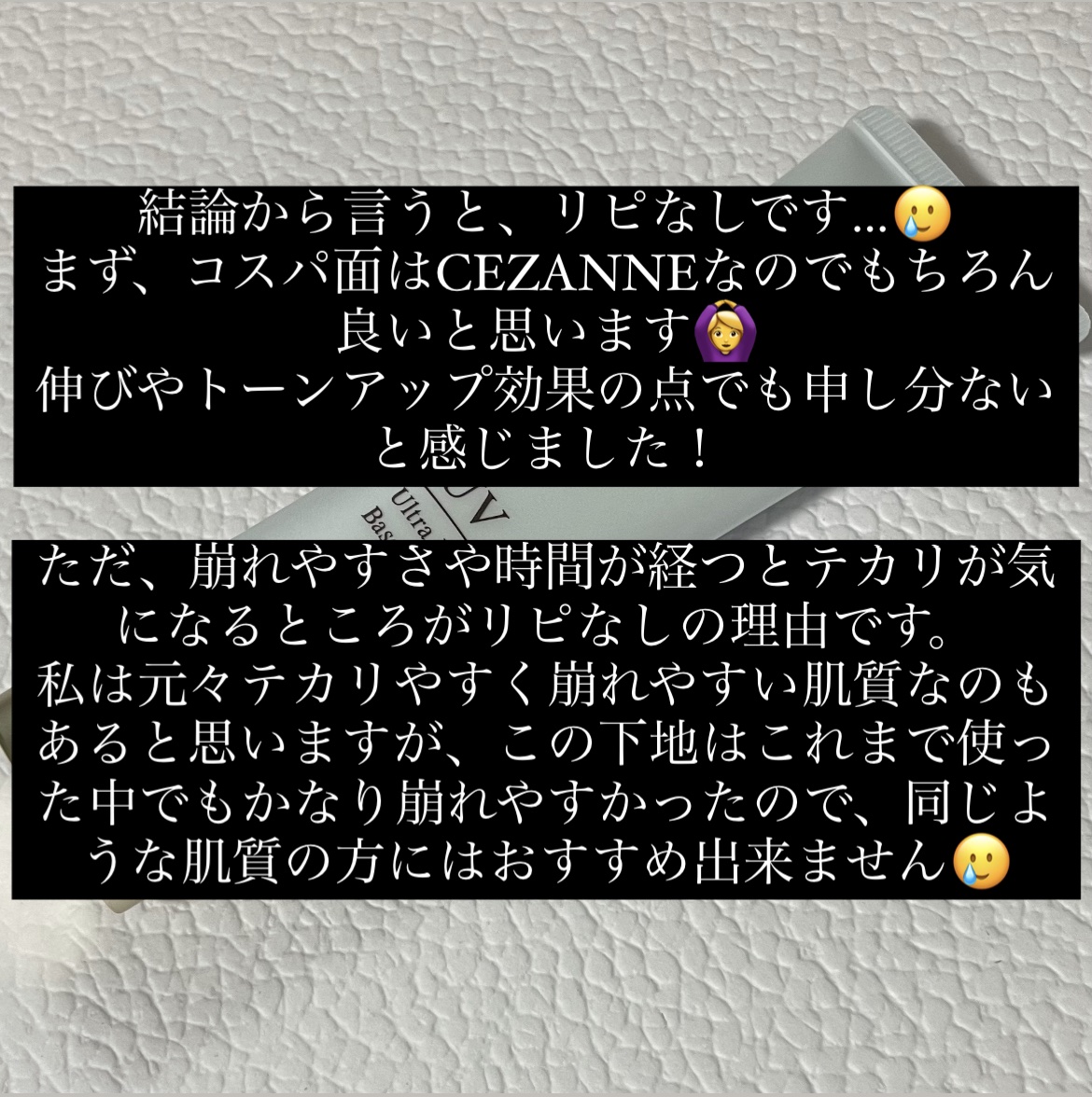 この下地は使い心地が本当によくて今回はオレンジベージュを購入してみました✨ 日常使いにぴったりで酸化亜鉛フリーなところも気に入ってます💫 セザンヌの隠れた名品だと思ってる!!