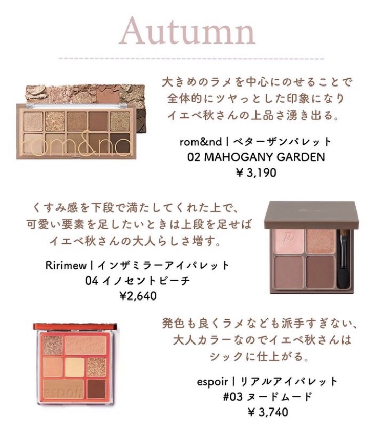 ふんわり発色で肌なじみ抜群♡透明感あふれるRom&ndのアイシャドウパレットをパーソナルカラー別にまとめました💓#パーソナルカラー#rom&nd #ベターザンアイズ