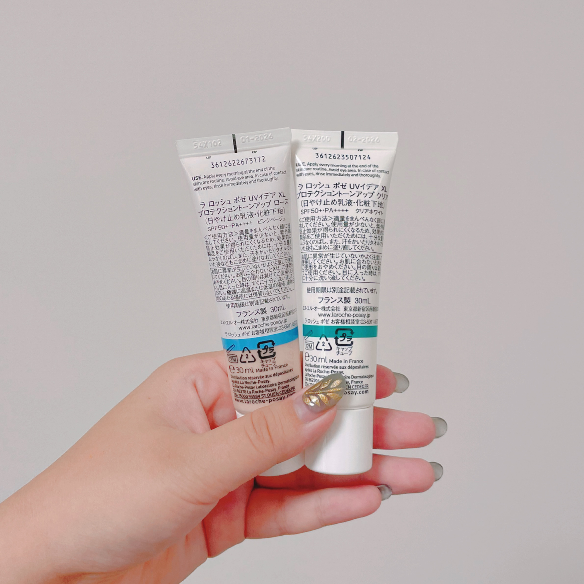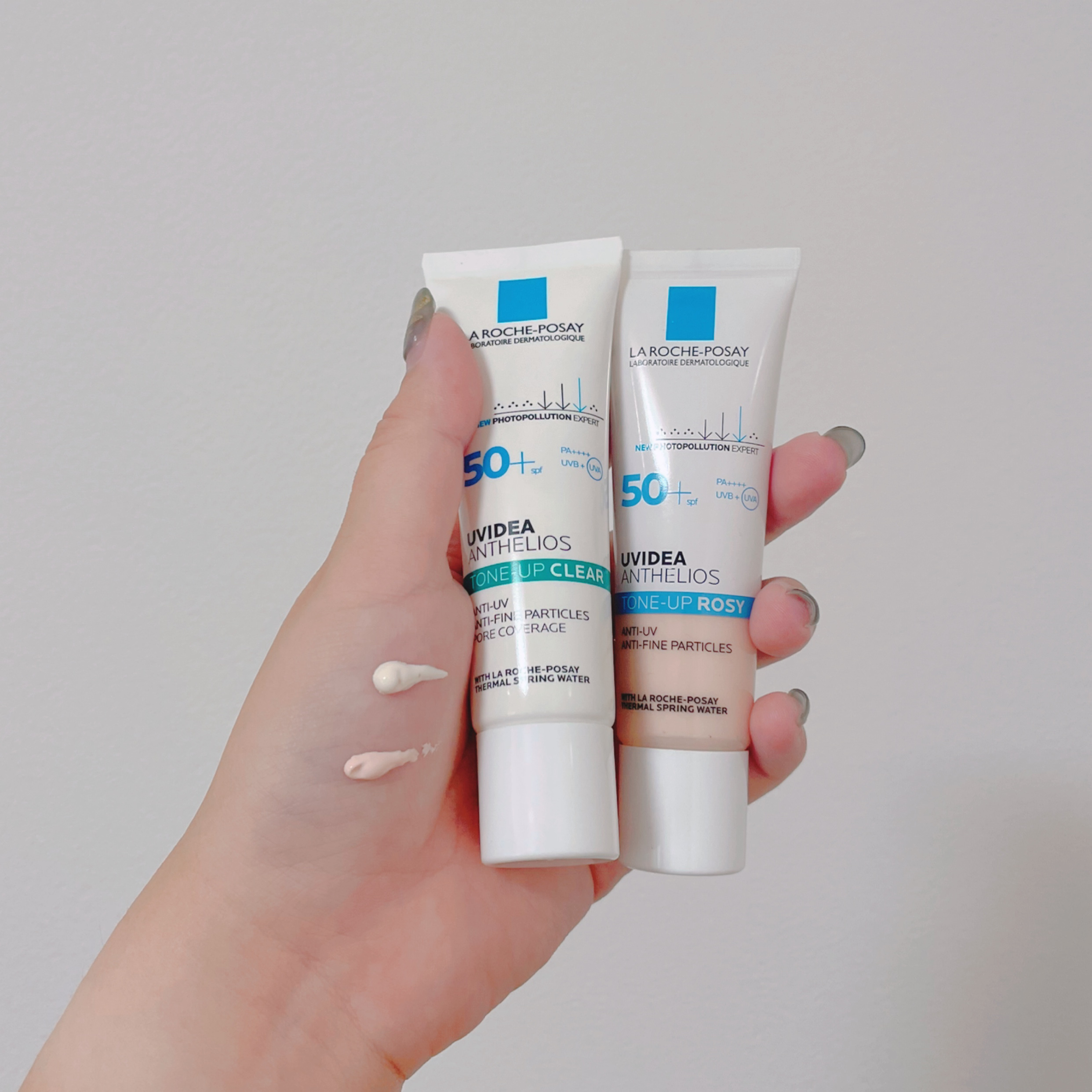 保湿力高めの下地が大好きなのでラロッシュポゼの下地はお気に入りでよく使います✨ かなりトーンアップします🤍自分は肌が黄ぐすみしやすいのでこれくらいトーンアップしてくれた方が時間がたった時にちょうどよくなります✨ 1番のお気に入りはローズです🌹肌から浮かない程よいトーンアップとほんのり血色感がよくなる所が大好きです🥰