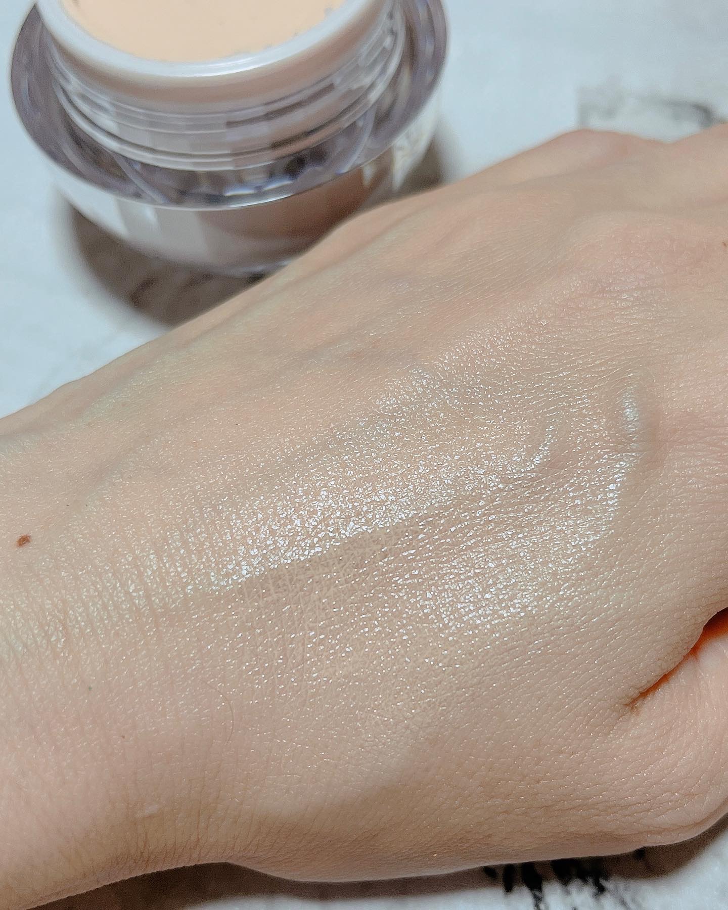 スパチュラでとるとぷるっぷる! 肌にのせるとすーっとなめらかにとろけて自然にトーン&透明感upするから素肌がキレイにみえる..🤍 スキンケア効果もあるから、むしろつけた方が肌にもいい🥺🫧