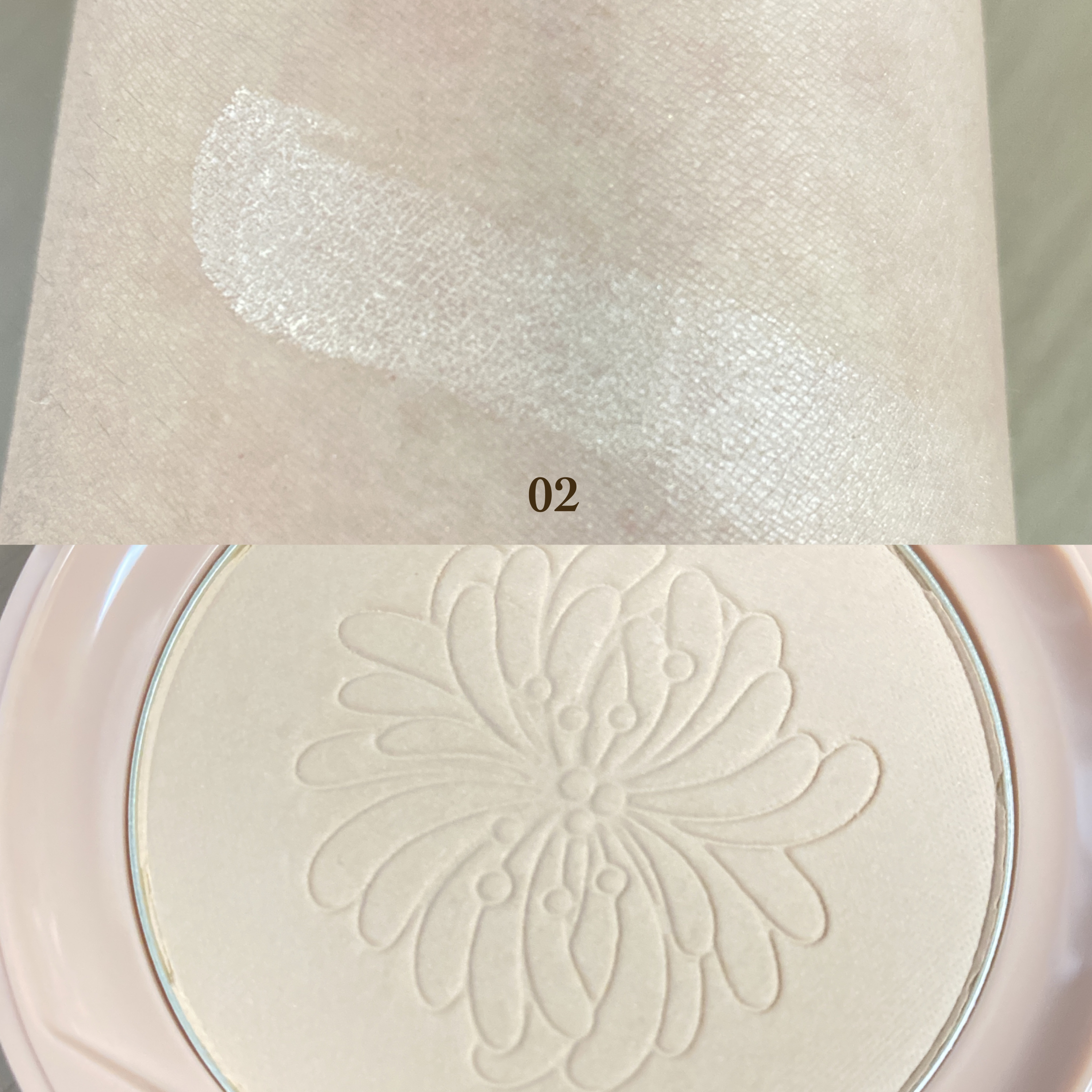 - <01> タルク、(フッ化/水酸化/酸化)/(Mg/K/ケイ素)、エチルヘキサン酸セチル、ポリメチルシルセスキオキサン、ジメチコン、(スチレン/DVB)コポリマー、ナイロン-12、シリカ、メドウフォーム油、合成ワックス、アセチルヒアルロン酸Na、オレンジフラワー水、カリンエキス、トコフェロール、ヒアルロン酸Na、ホホバ種子油、マドンナリリー根エキス、加水分解ヒアルロン酸、BG、アミノプロピルトリエトキシシラン、アルミナ、エタノール、ジメチコノール、ステアリン酸、ハイドロゲンジメチコン、ポリエチレン、合成金雲母、水、フェノキシエタノール、メチルパラベン、香料、オキシ塩化ビスマス、グンジョウ、マイカ、酸化チタン、酸化亜鉛、酸化鉄、赤226 <02> タルク、(フッ化/水酸化/酸化)/(Mg/K/ケイ素)、エチルヘキサン酸セチル、ポリメチルシルセスキオキサン、ジメチコン、(スチレン/DVB)コポリマー、ナイロン-12、シリカ、メドウフォーム油、合成ワックス、アセチルヒアルロン酸Na、オレンジ花水、カリンエキス、トコフェロール、ヒアルロン酸Na、ホホバ種子油、マドンナリリー根エキス、加水分解ヒアルロン酸、BG、アミノプロピルトリエトキシシラン、アルミナ、エタノール、ジメチコノール、ステアリン酸、トリエチルヘキサノイン、ハイドロゲンジメチコン、ポリエチレン、水、水添レシチン、フェノキシエタノール、香料、オキシ塩化ビスマス、マイカ、酸化チタン、酸化亜鉛、酸化鉄、硫酸Ba