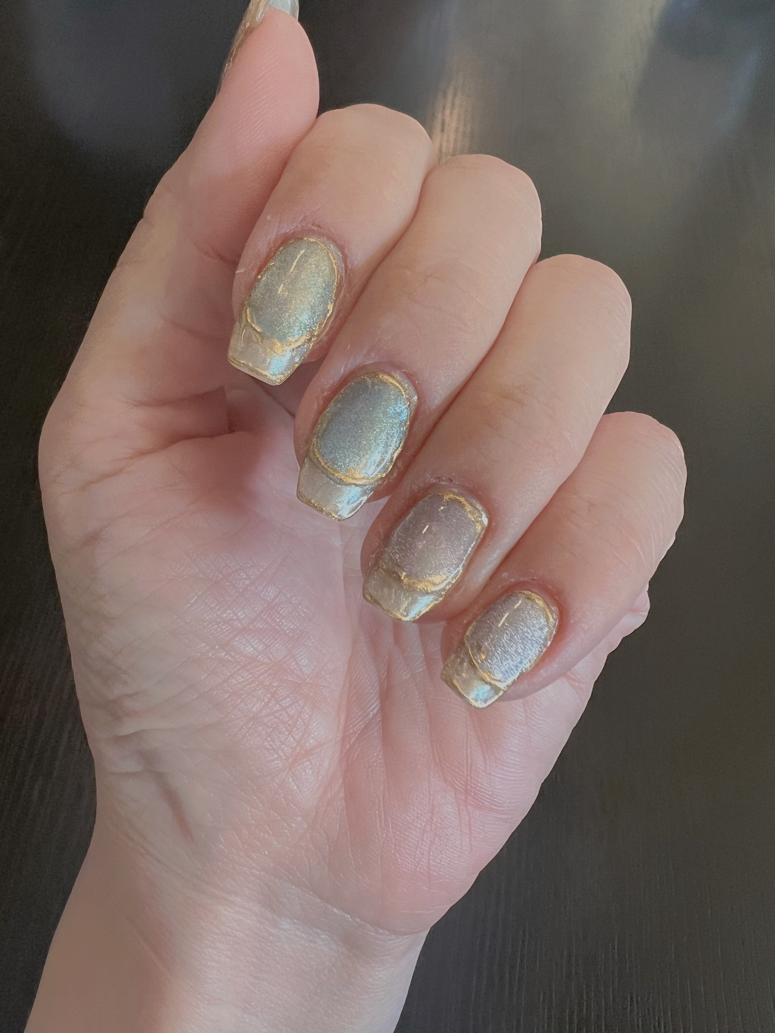 先だけ剥がれたり、かけたりしない剥がれにくいメリットありありのジェルネイルシール💅✨イイんですよ😻今回はシンプルでプルプルでシアーな感じのグレージュ×ゴールドラメ✨#ネイル#Seria#ジェルネイルシール...