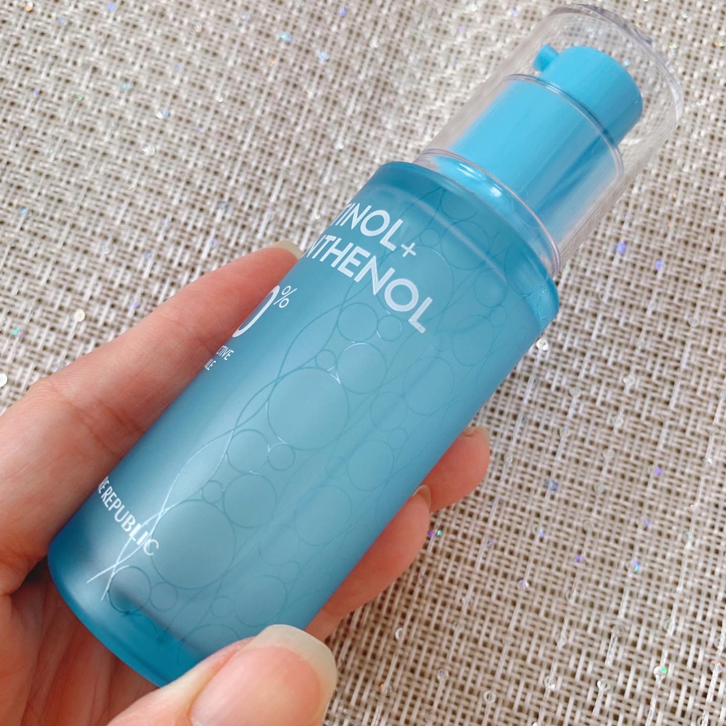 こちらの美容液はレチノールに加えパンテノールも10%配合することで毛穴ケアもしつつ保湿鎮静効果も狙える美容液🩵 レチノールで毛穴をケア パンテノールで保湿とバリア機能UP と、いいとこ取りをしながらケアできます✨ ややフローラル系の香りがしますが、香りはそこまで きつくなく肌なじみの良い軽めのテクスチャー。一応夜のみ使用にしていますが、今のところ肌荒れなく使えています✨