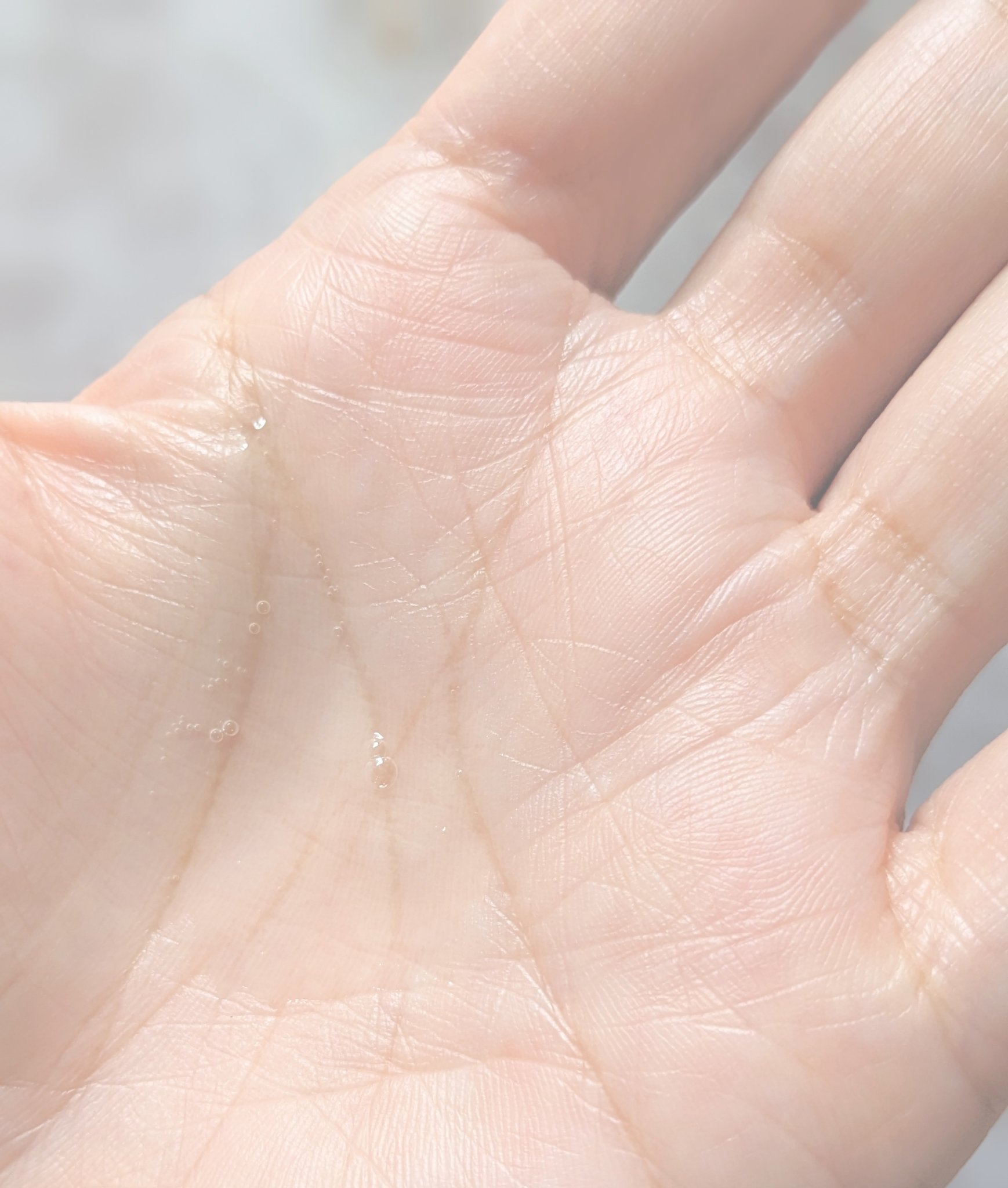 見た目の可愛いさもさることながら、プッシュして初めてボールが弾けるから、最後まで鮮度を保ったまま使えるのもいいなと思いました♪ テクスチャーは、透明なジェルでとろーんと、とろみがあります❤️ 肌に伸ばすとみずみずしく、しっとりと潤う感じ♪ 肌に吸い付く感じでペトペトします。ちょっとベタつきが気になるかな。 香りは爽やかな感じで気になりません◎ 私は若干痒みがでます。花粉が肌が敏感になってるのでそのせいかもしれません☆