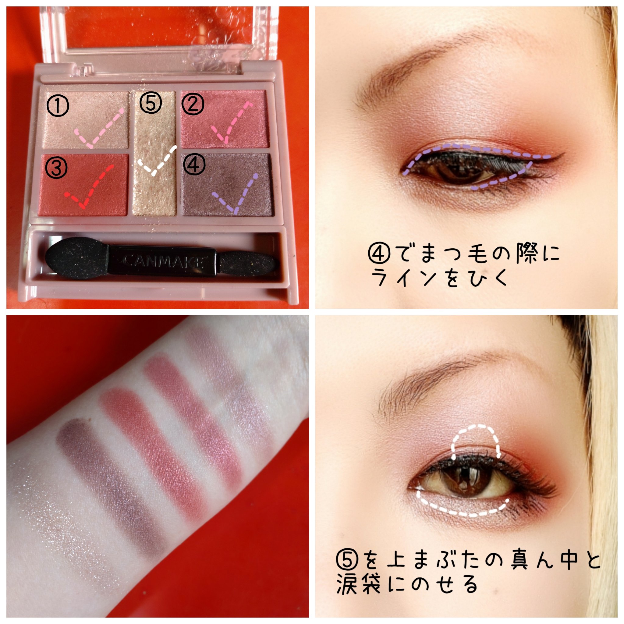 - 1枚のパレットで2つのスタイルが完成! 5色の欲ばりアイシャドウ♥ メインカラーを選んで2つのスタイルが楽しめる! A→B→D でスタイル1 A→C→D でスタイル2 繊細な粉質が、しっとりとまぶたに密着して色落ちを防ぎます。 透明感のあるキラうるトッピングジュエル(繊細ラメ)は、気分によってトッピング!