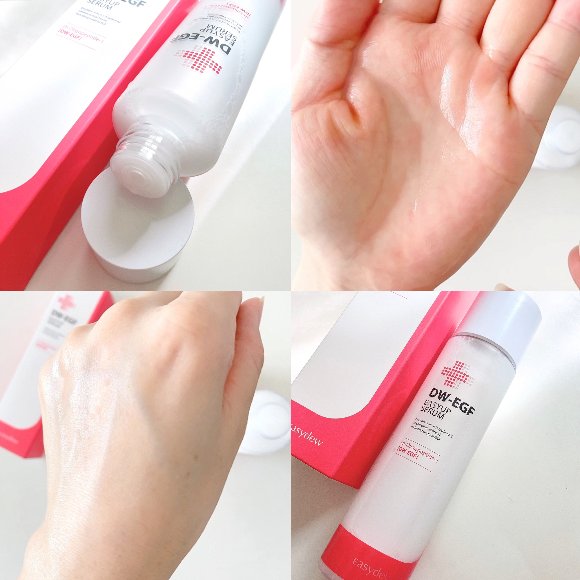 DW-EGFという大熊(デウン)製薬の独自成分を配合。DWはデウン、EGFは、新しい肌をつくってターンオーバーが順調に行われるよう働く細胞の成長因子のことだよ。 ハリケアととうるおいチャージに期待できる!テクスチャーはサラサラ、白いからペタペタしそう思いきやさっぱり系🤍 CICA成分も配合!乳液に美容液が混ざったようなテクスチャー。エイジングケアに欠かせないEGF、積極的に使いたい方はチェックしてみてね😉