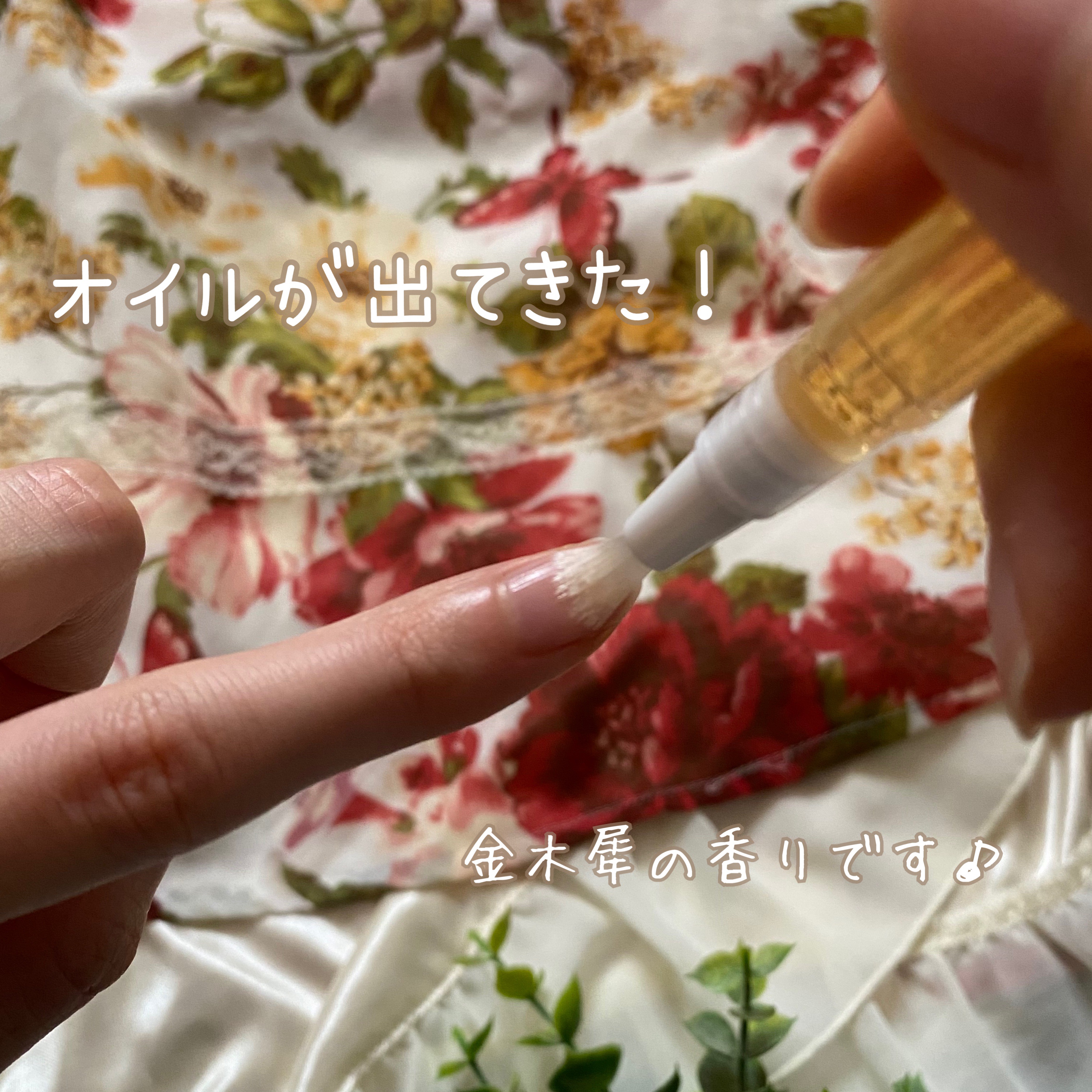 Gelresアロマキューティクルペンギンモクセイ爪の乾燥、ささくれ対策に 甘皮ケアしっとり潤うネイルオイル銀木犀の香りは微かに香るくらいです。便利なブラシタイプで気軽に塗布出来ます。 オイルを塗ったら指で優しくクルクルとなじませます。#キンモ...