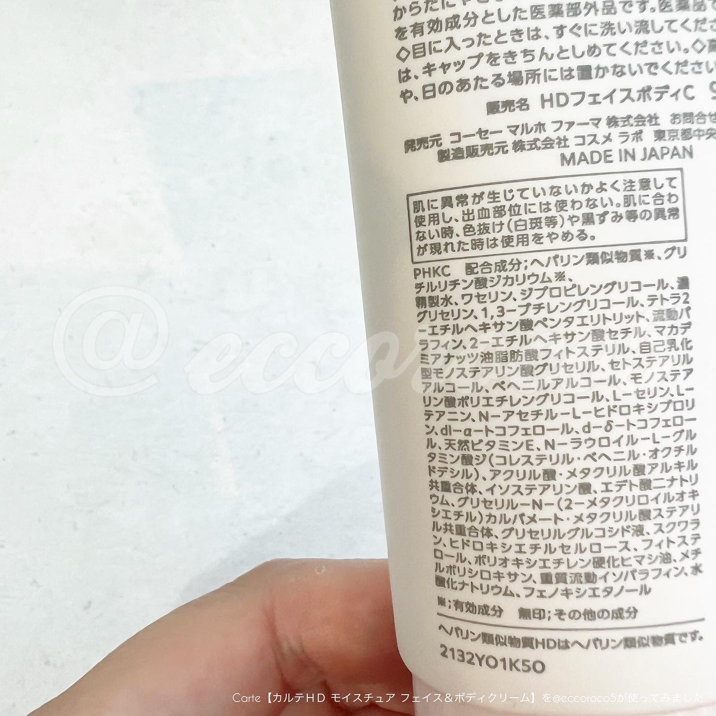 - 【全身用高保湿クリーム】 コーセーとマルホの合弁会社コーセーマルホファーマから発売された「カルテHD」。マルホから唯一供給を受けた「ヘパリン類似物質HD」を配合。 ゴワついたあれがちな肌にもピタッと密着、もっちりなめらか肌に導く全身用高保湿クリーム。 ひじ・ひざ・かかとなど気になるパーツにもピタッと密着してシールドできる「ワセリン」や「ピタッと保護膜オイル」を高配合。 それでいてのびの良いオイルとバランスよく組み合わせているから、腕やすねなどの広い範囲にもスーッと軽やかにのばせます。 フェイス&ボディローションと共通の「肌やわらかオイル」も配合。 濃厚なうるおいで肌をしっかり包み込みながらべたつかない使い心地です。