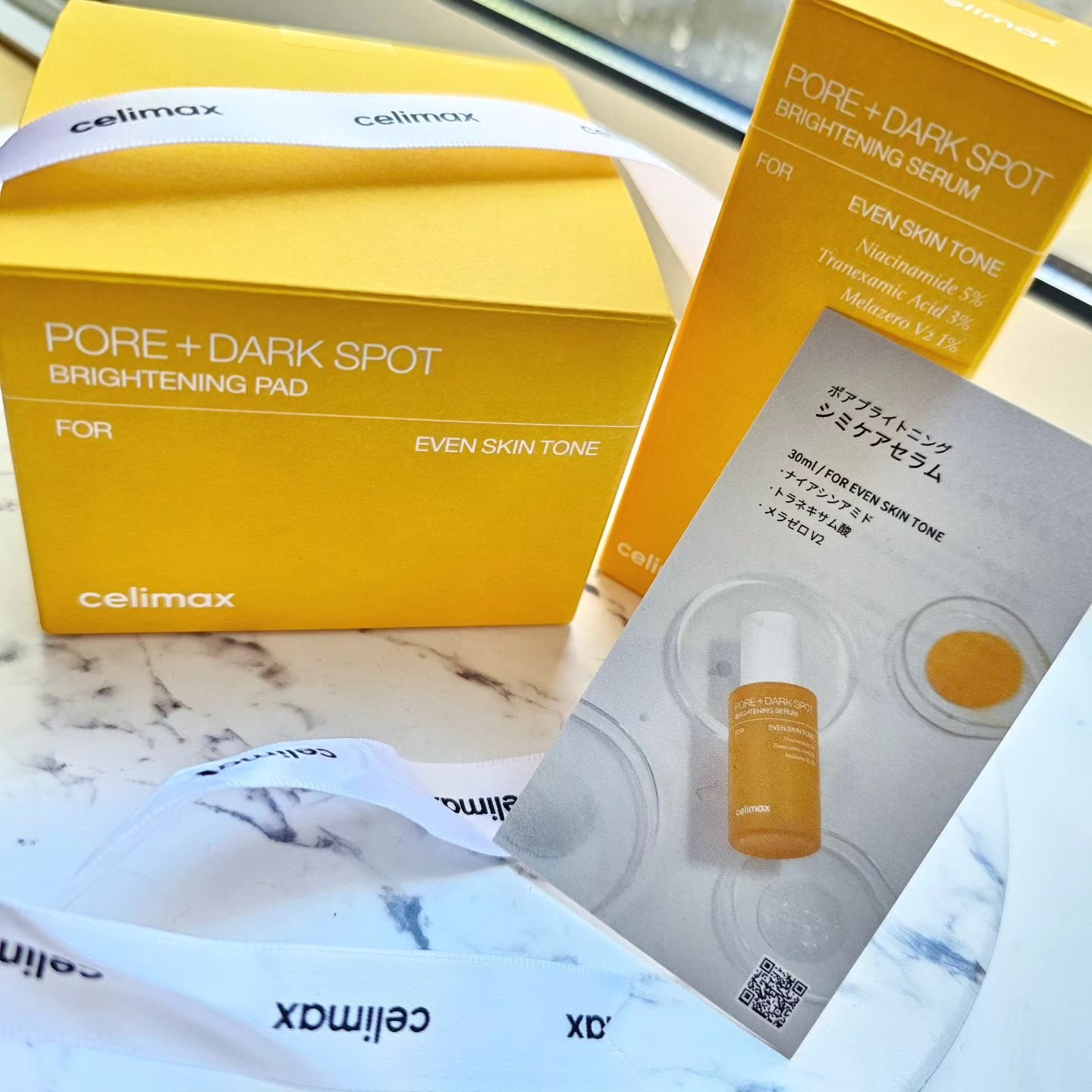 #PR@celimax.japan様からポアブライトニングシミケアセラムとポアブライトニングシミケアパッドをいただきました😻ありがとうございます!シミ•くすみだけじゃなくて毛穴ケアも😊トラネキサム酸、ナイアシンアミド、メラゼロV2*配合。(※...