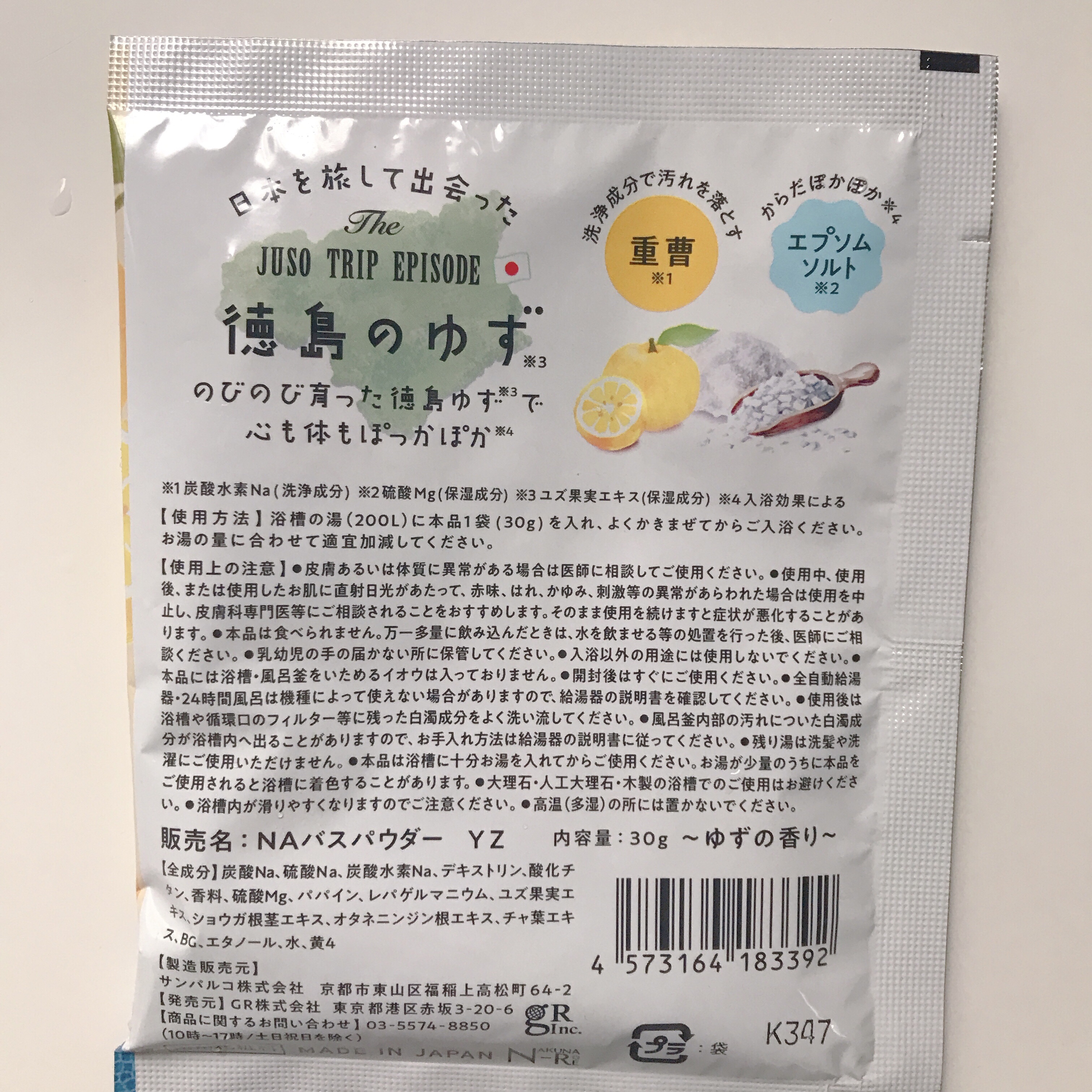 - 旅するJUSOちゃんのご当地入浴剤シリーズ。 重曹(炭酸水素Na:洗浄成分)のお風呂ですべすべお肌に。 エプソムソルト(硫酸Mg:保湿成分) 、有機ゲルマニウム(レパゲルマニウム:保湿成分) 入り 温浴効果によりじんわり汗、体をぽかぽか温める。