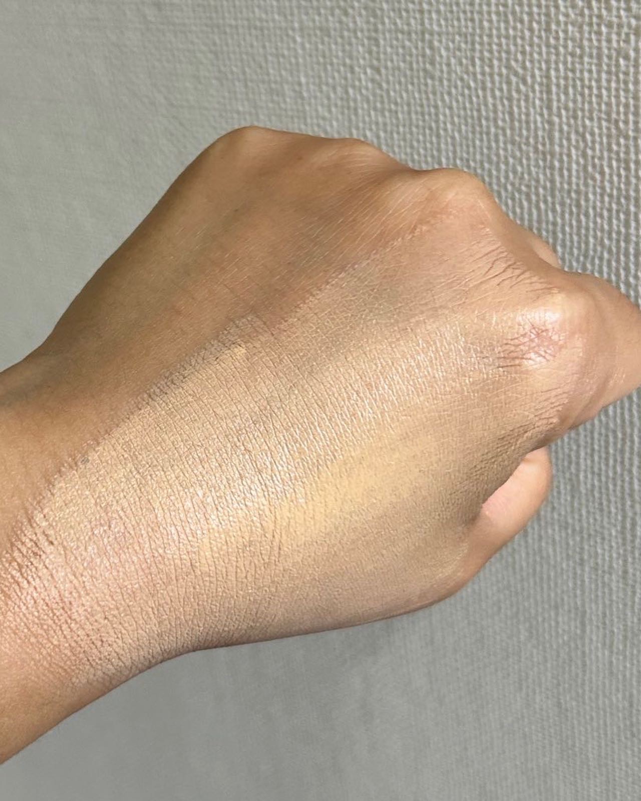 ベースの水色は濃く重ねなければほとんど分からず、とにかくラメがキラキラで透明感が爆発します💥 ゴールドのラメがメインなのでイエベの私でも使えます。 オレンジのアイシャドウと合わせると少しピンクがかった感じになります。