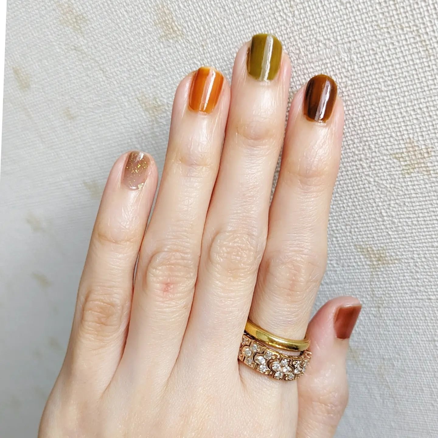 ベースコート・ネイルカラー・トップコートが1本で完了するオールインワンネイルです。 大好きなくすみカラーの種類も多く、発色が良くて気に入りました! 乾きやすくダマになりにくいので、とても塗りやすかったです!