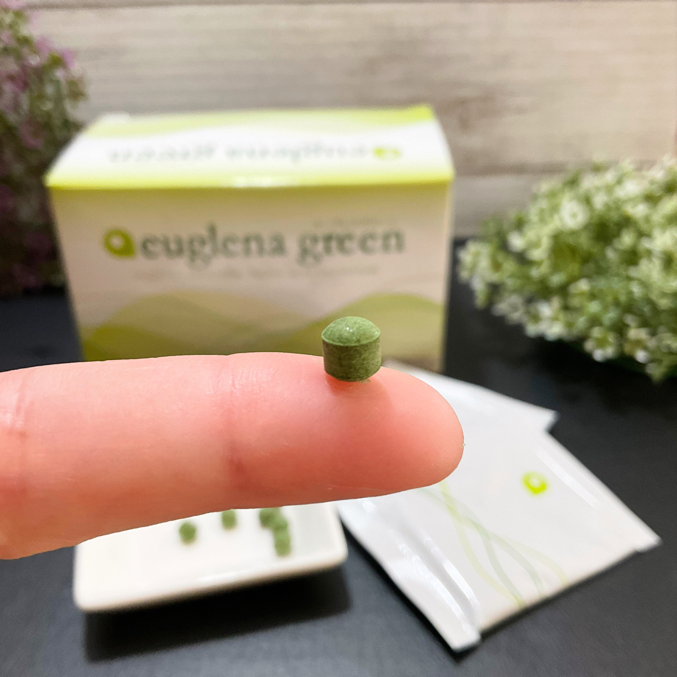 ミドリムシは5億年以上前の地球に誕生した微生物で、動物と植物両方の性質を併せ持ち、人間のカラダに必要な栄養素をバランスよく含んでいます。 さらに独自成分【パラミロン】を含んでおり、健康と美容に役立つことが期待されています。 ビタミン、ミネラル、アミノ酸、DHAなど、59種類もの栄養成分をバランスよく含有。 ユーグレナは細胞壁を持たないので、野菜などと比べて効率よく栄養が吸収できる。 1袋に小さな粒が12個入っています。 私は4粒だと喉に引っかかる時があるから、3粒ずつお水と一緒に飲んでる♡ 着色料や保存料などの体に良くないものは入ってないし、食事では摂りきれないたくさんの栄養素を効率よく摂れるのは嬉しいな😊