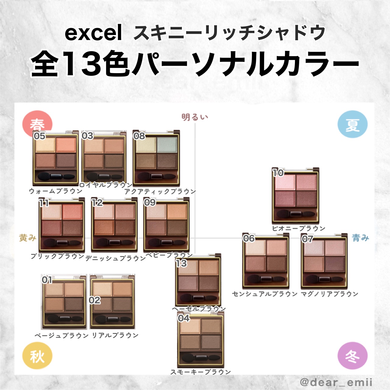 好きすぎて集めまくったexcelスキニーリッチシャドウ手持ち正直レビュー📝1st.ブライトサマー2nd.ブライトスプリングです🙌私の推しはSR06センシュアルブラウンです👑✦・・✦excelスキニーリッチシャドウSR03ロイヤルブラウンSR0...