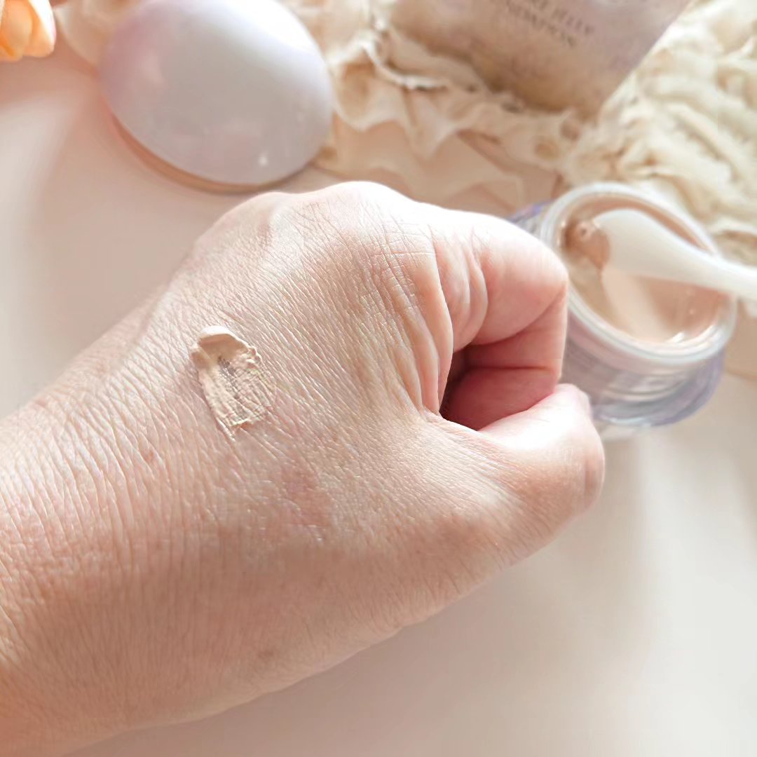 スパチュラでとるとぷるっぷる! 肌にのせるとすーっとなめらかにとろけて自然にトーン&透明感upするから素肌がキレイにみえる..🤍 スキンケア効果もあるから、むしろつけた方が肌にもいい🥺🫧