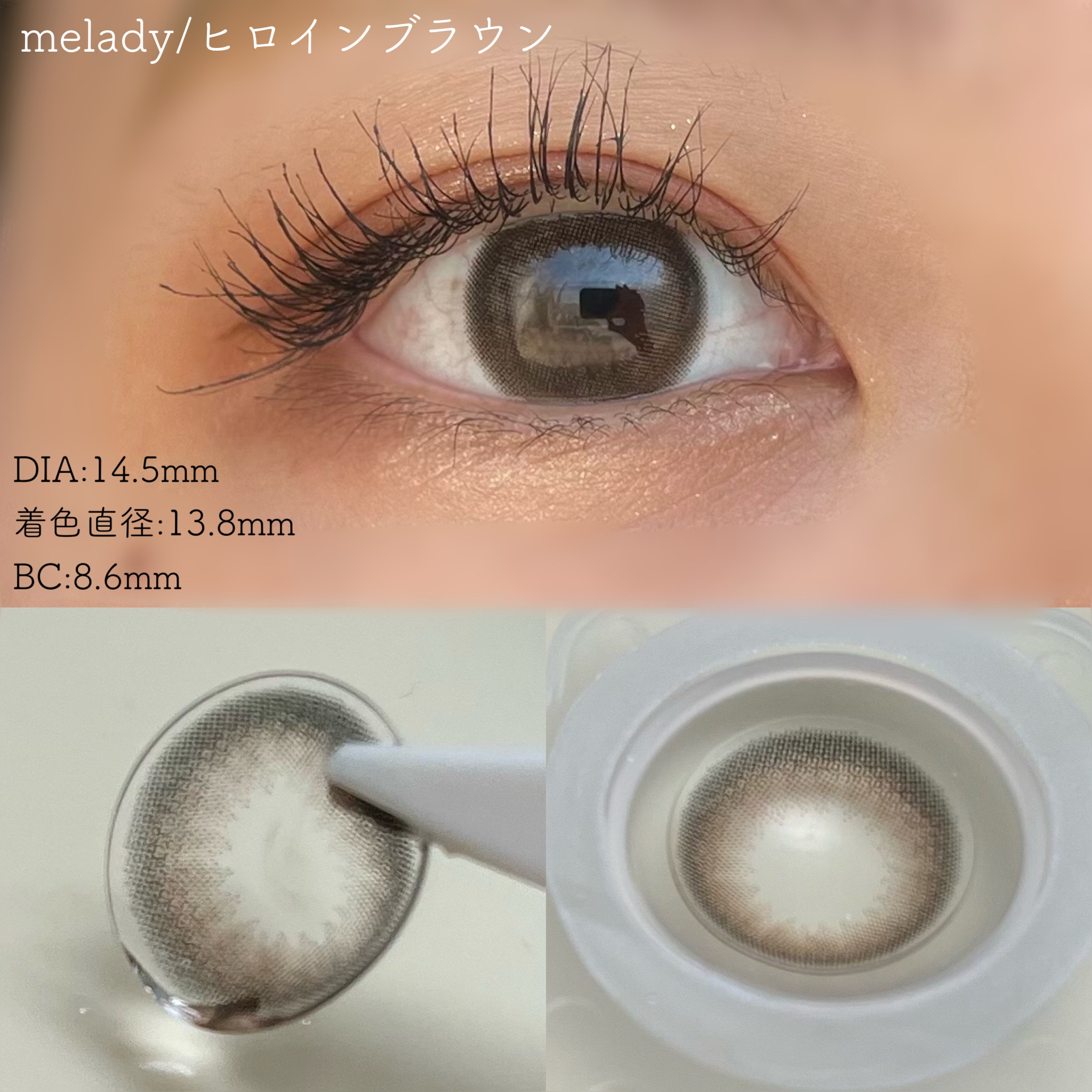 - ※2025年6月以降、商品パッケージ裏面・側面の一部表記を順次変更いたします。尚、これにかかる商品の交換・返品は承っておりません。 ヒロインの瞳の法則♡ ナチュラルなのにしっかり盛れるDIA14.5mm! ■ヒロインブラウン 透明感たっぷりなブラウンレンズ。瞳に馴染む色だからとってもナチュラル。 ■アイドルリング さりげない細フチとちゅるんブラウンがナチュラルに瞳を強調♡ ■ライアーピンク ピンクブラウンのフチとムラのあるデザインで立体感のあるきらきらな瞳を演出♡ ■レディブラック じゅわっとぼかした繊細なデザインで透明感に満ちた存在感のある瞳を演出♡ ■プリンセスショコラ しっかり太フチとあまくとろけるショコラブラウンでプリンセスみたいに愛される瞳に♡ ■スターグロー くりっと盛れる太フチとうるみツヤめく水光カラーで光を取りこむキラツヤな瞳に♡ ■Maria Ring(マリアリング) 絶妙細フチと白っぽ透明感グレージュでちょっぴり背伸びした余裕仕込みレンズ♡ ■Mermaid Ring(マーメイドリング) 絶妙太フチときらめき透明感マーメイドグレーでピュアにうるめく美少女な瞳に♡ カラーコンタクトレンズの不適正使用による眼障害の危険性等などがあります。 ●コンタクトレンズは高度管理医療機器です。不十分な洗浄・消毒など不適切なケアや、長時間・交換期間を超えた装用により、アレルギー性結膜炎、角膜感染症、角膜潰瘍等の重篤な眼障害が発生する危険性があります ●ご使用前に取扱説明書を確認してください 使用上の留意事項 ●眼科医院等を受診してからお求めください ●眼に異常を感じたら直ちにレンズ使用を中止し、お近くの眼科等で診察を受けてください ●医師の指示にしたがってご使用ください ●コンタクトレンズを装用する場合、自覚症状がなくても、眼科医院等での定期検査を受けてください ●レンズに不具合がある場合は使用しないでください