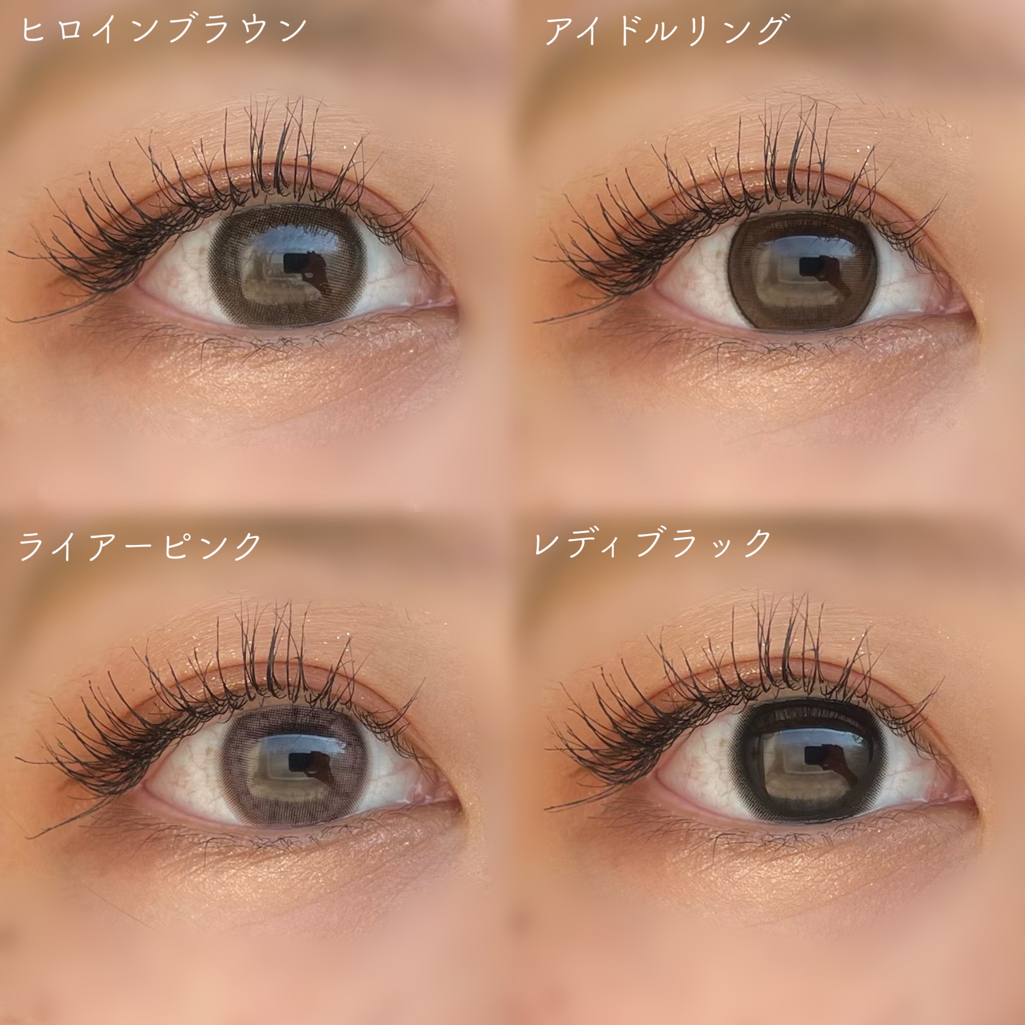 トーンアップモカは馴染んで裸眼を自然にトーンアップしてくれる くらげはめちゃくちゃ馴染むし、めちゃくちゃナチュラルに目が盛れる! カーヴィピンクはほどよいピンク!ダークトーンの縁があるから、目がくりっと丸く見えます プリズムスターはめっちゃ自然に目を大きくしてくれます 目に光が入って透明感もでる