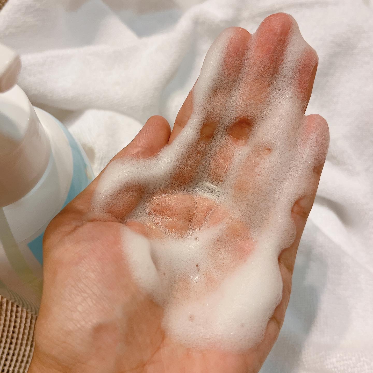 1プッシュするだけで、もこもこの泡が出てきます。 泡立て苦手な私、朝バタバタする私にはピッタリ! 割とさっぱりとした使い心地かな。 香りも果実の香りなのかなぁ、と思ったら、なんと無香料! 500mlの大容量タイプなのも嬉しいです。