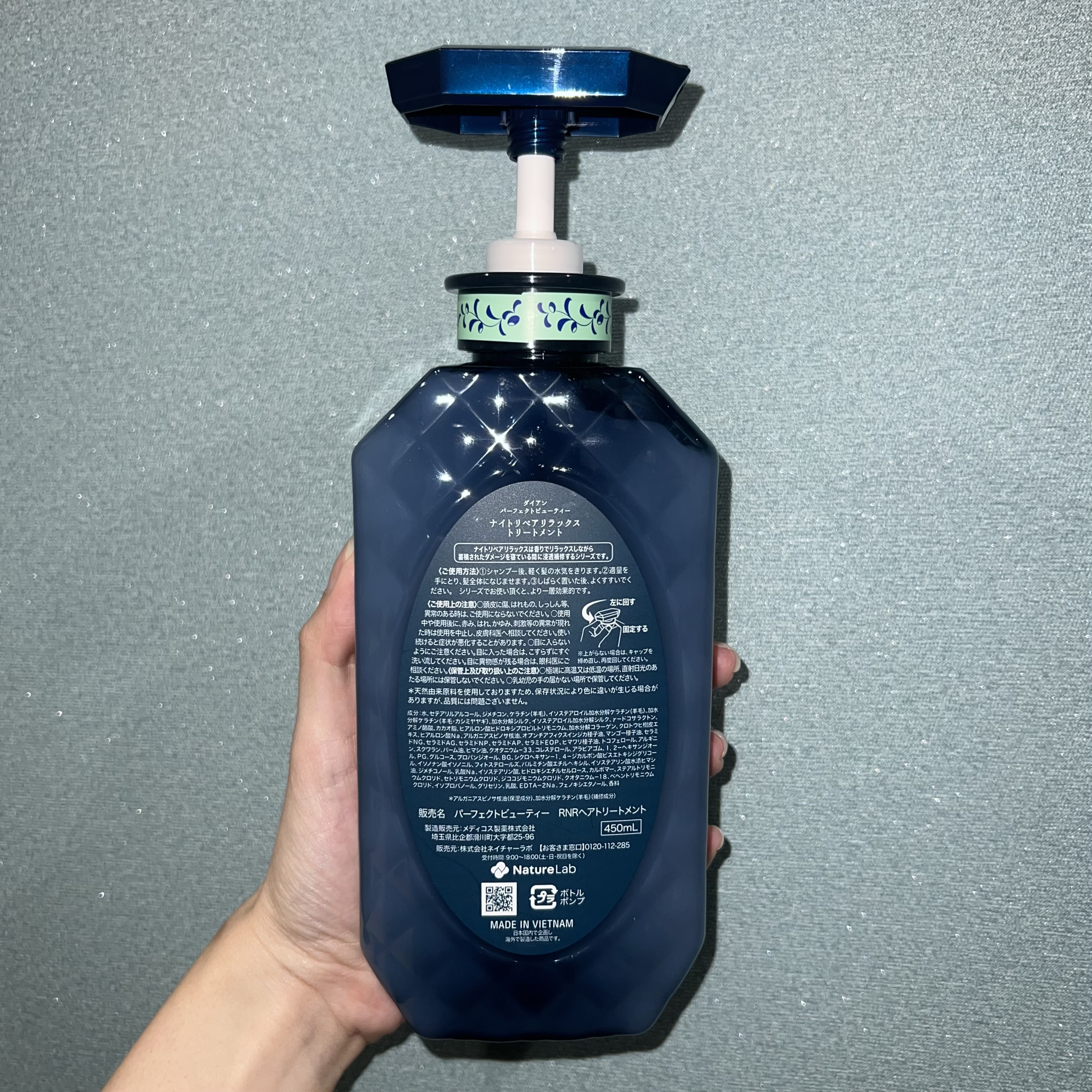 ダイアンパーフェクトビューティー エクストラナイトリペア シャンプー トリートメント 450mlセットで1,000円くらいで購入!!シャンプーは緩め。すすぐとき指通らんくらいつるっつるのキッシキシ😳トリートメントするとマシになるけど...ド...