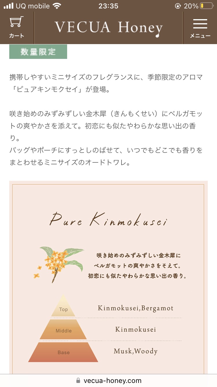 商品詳細情報VECUA Honey ワンダーハニー ファンファントワレ ピュアキンモクセイ