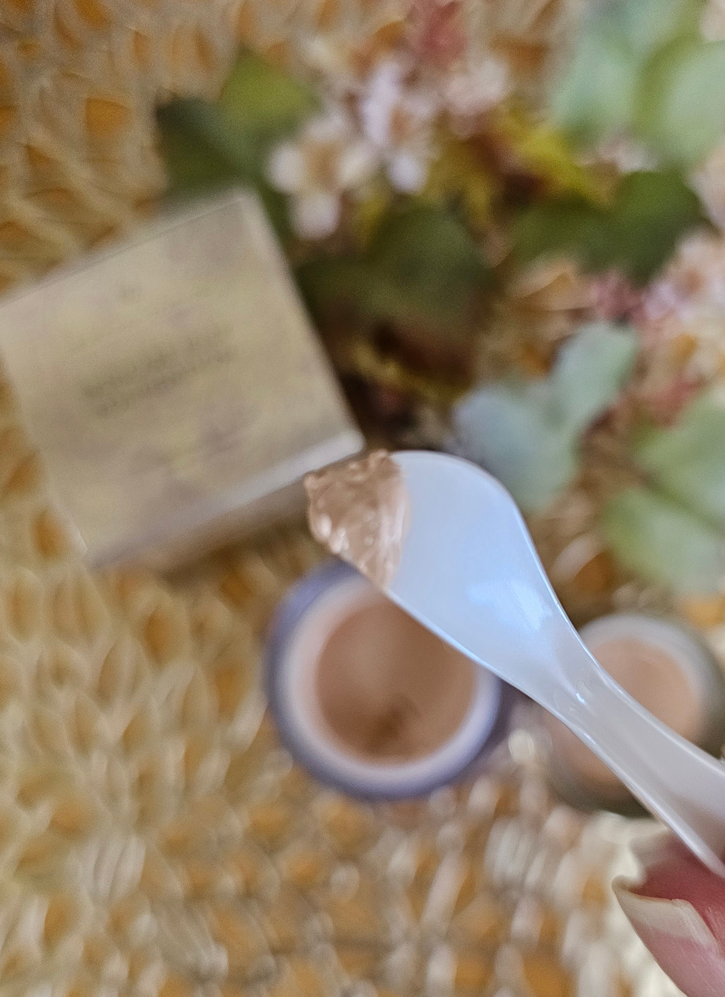 スパチュラでとるとぷるっぷる! 肌にのせるとすーっとなめらかにとろけて自然にトーン&透明感upするから素肌がキレイにみえる..🤍 スキンケア効果もあるから、むしろつけた方が肌にもいい🥺🫧