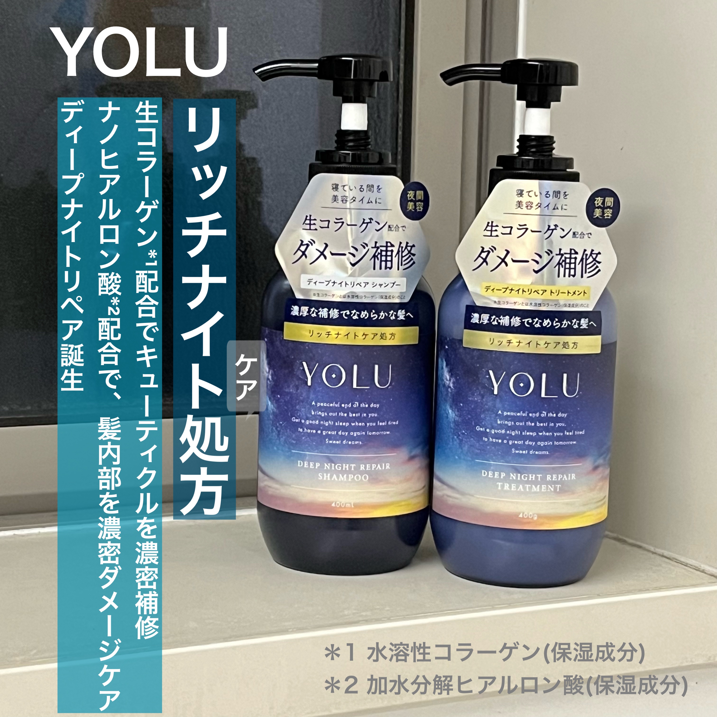 YOLU▷ディープナイトリペアシャンプー泡立ち◎で洗いあがりはきしまずしっとり✨️▷ディープナイトリペアトリートメントなめらかなテクスチャーで髪になじませやすく、洗いあがりはしっとりなめらか✨️ドライヤー後はまとまりが良くなりしっとりサラ...