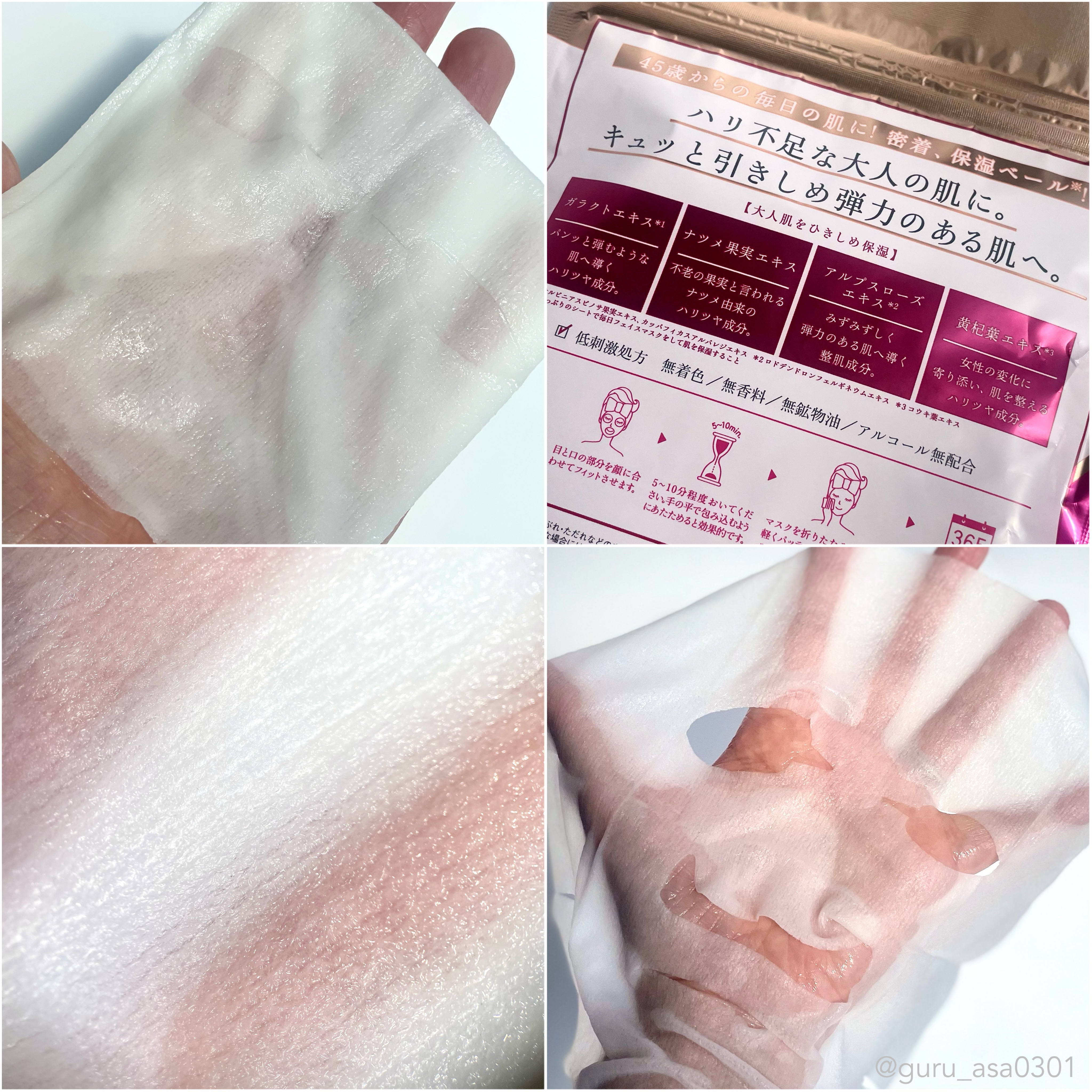 年齢を重ねた方向けの「LuLuLun OVER45」が発売されています。 年齢にあらがうのではなく、いろんな経験を重ねた美しさに磨きをかけるエイジングケアを、と言うコンセプトで生まれたそう! 超極厚ふっくらシートで作られているので、顔全体を優しく包み込んでくれそう! 大人肌の「質」の変化に着目し、キュッと引き締めながらハリのある肌にサポートしてくれるマスク。