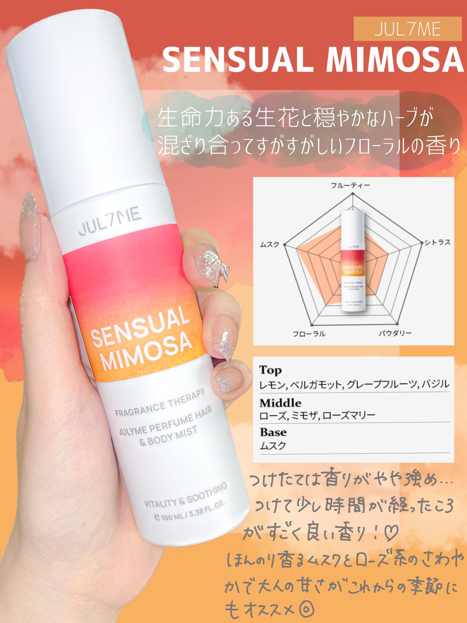 香水のような濃密な香りで、毎日のヘアケアにプラスで使うことで香りと同時にサラサラ髪も手に入れれます! オイルのようなベタつきも感じさせないので、オイルのベタつきが苦手な人におすすめします! 水分がタップなので、髪の毛のバサバサ感が無くなって綺麗にまとまるので好きです!!!