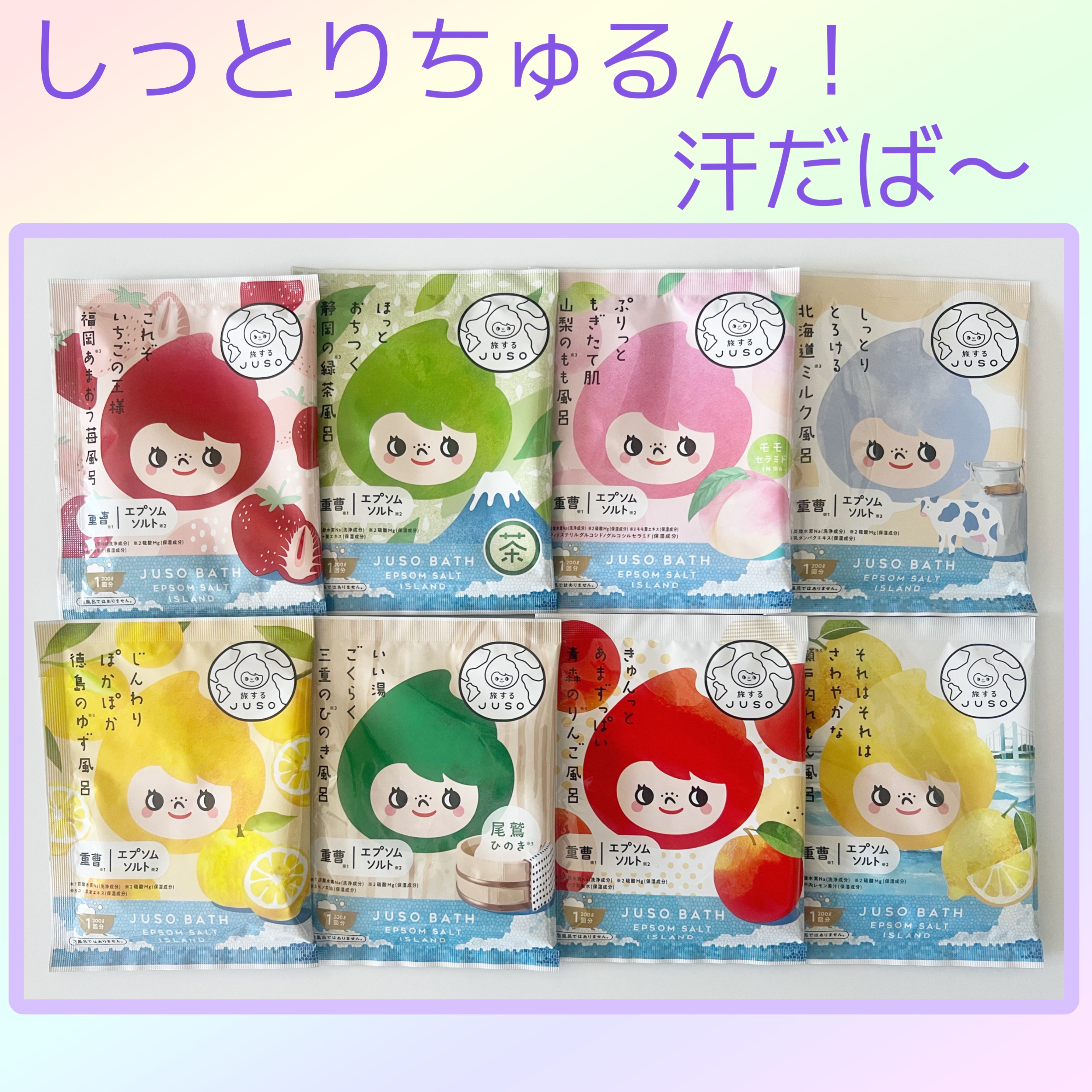 エプソムソルトに重曹、そこにJUSOちゃんが日本各地を旅して出会った素材が入ったバスパウダー♡ 青森のりんごは〜りんごの香り〜 これが一番好き♡ 薄い透明赤色のお湯で、ゆっくり入ってるとウトウト眠くなるくらいリラックスできましたー 愛媛温州みかんは〜みかんの香り〜 入れたばかりの時は濃いめの色かと思ったけど全体に混ざったら薄橙色というか乳白オレンジ色!