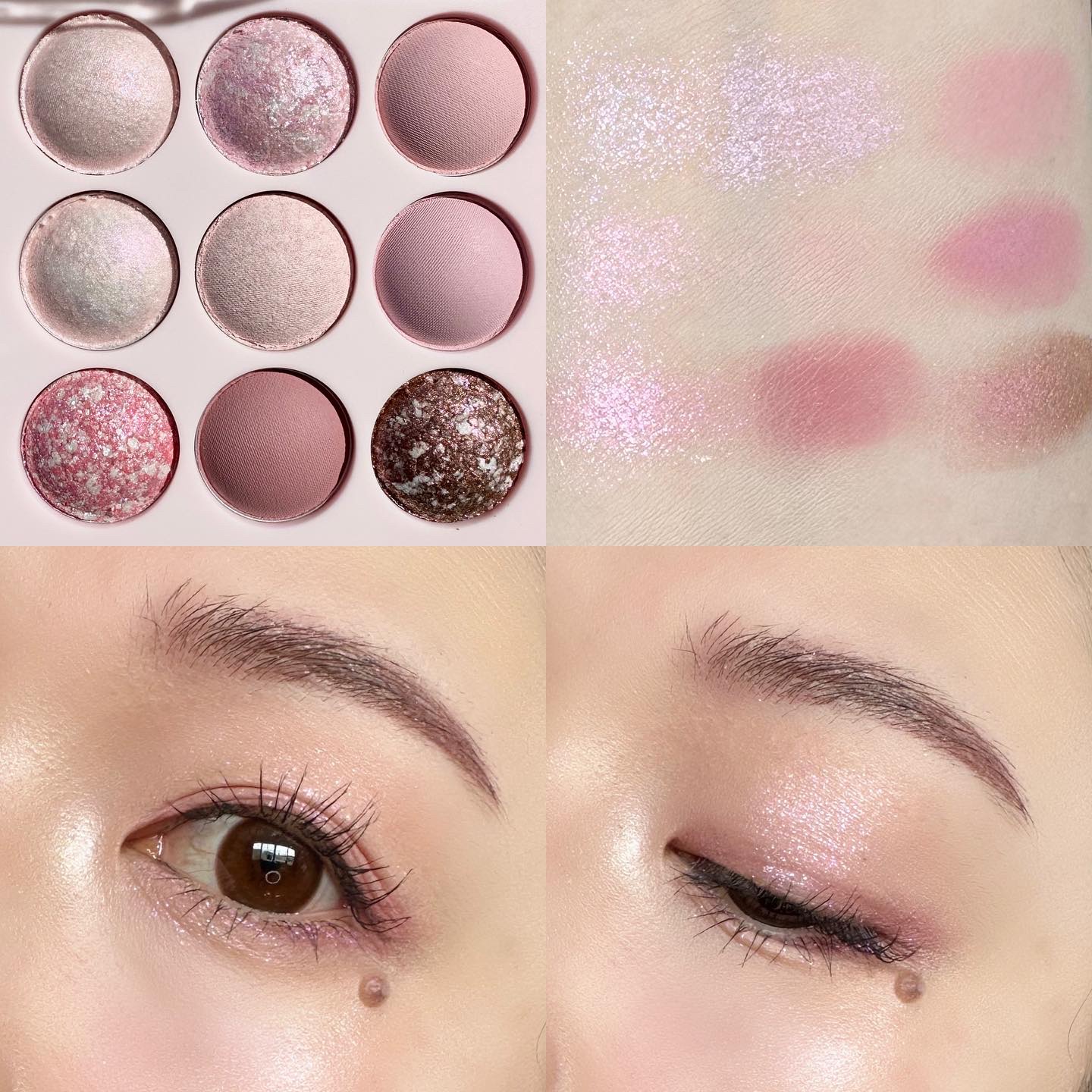 手に試した感じではベースのブルーは弱く、ラメ自体がブルーで可愛すぎる…! BAさんはパウダーアイシャドウのベースにもおすすめと教えてくれたので、 今日はこちらをベースにピンクブラウン系の アイシャドウを使ってメイクしてみたよ🫶🏻 肌に伸ばすとすぐにサラサラになるから ベタベタが残ったりしないし、 パウダーアイシャドウの上に重ねてもヨレない◎