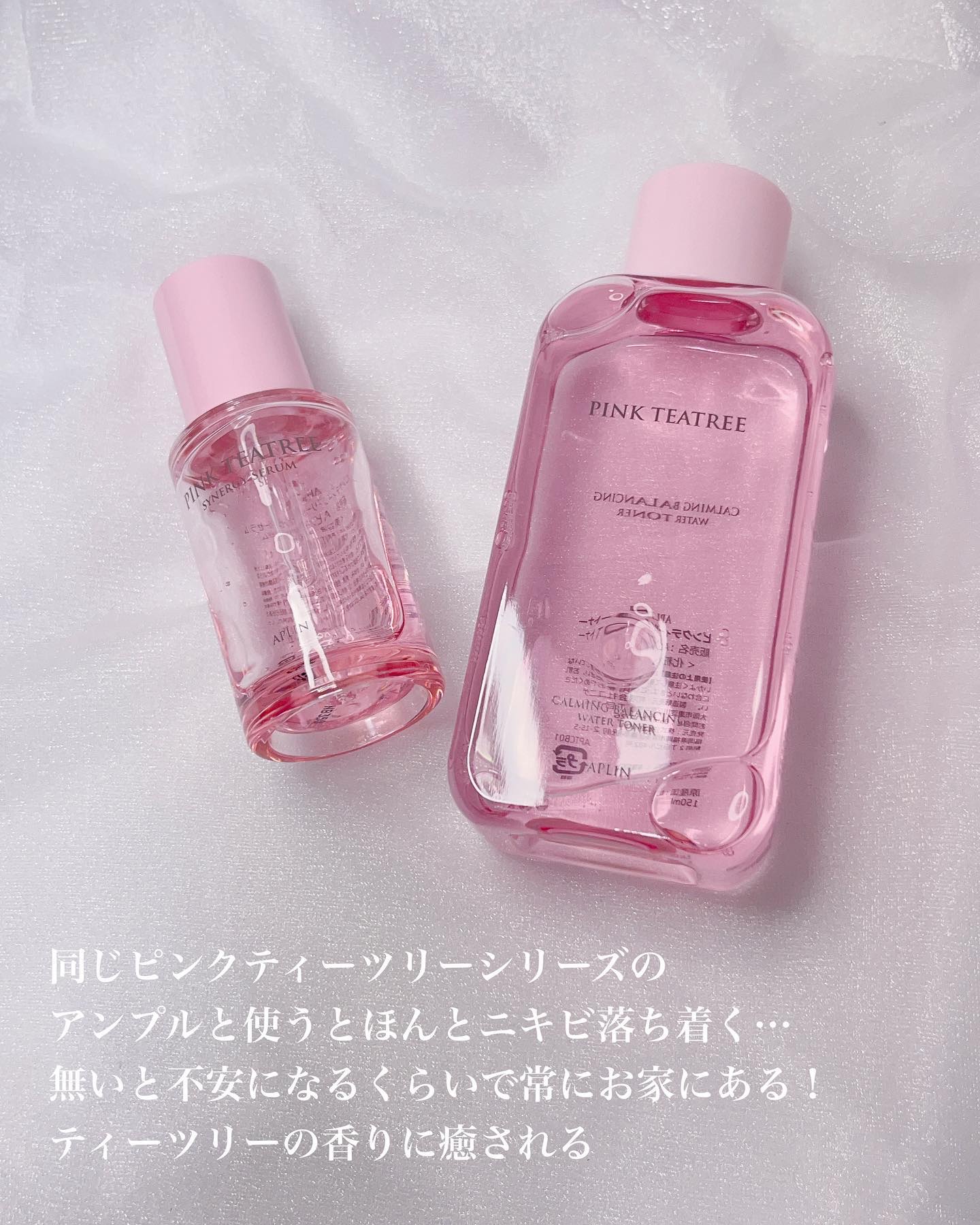 ティーツリーや、シカエキスを配合でニキビ、肌荒れ悩みをケアしてくれるトナー🩷 ピンク色は自然成分「ビタミンB12」本来の色だそう✨ サラサラテクスチャーで、さっぱりした使い心地✨