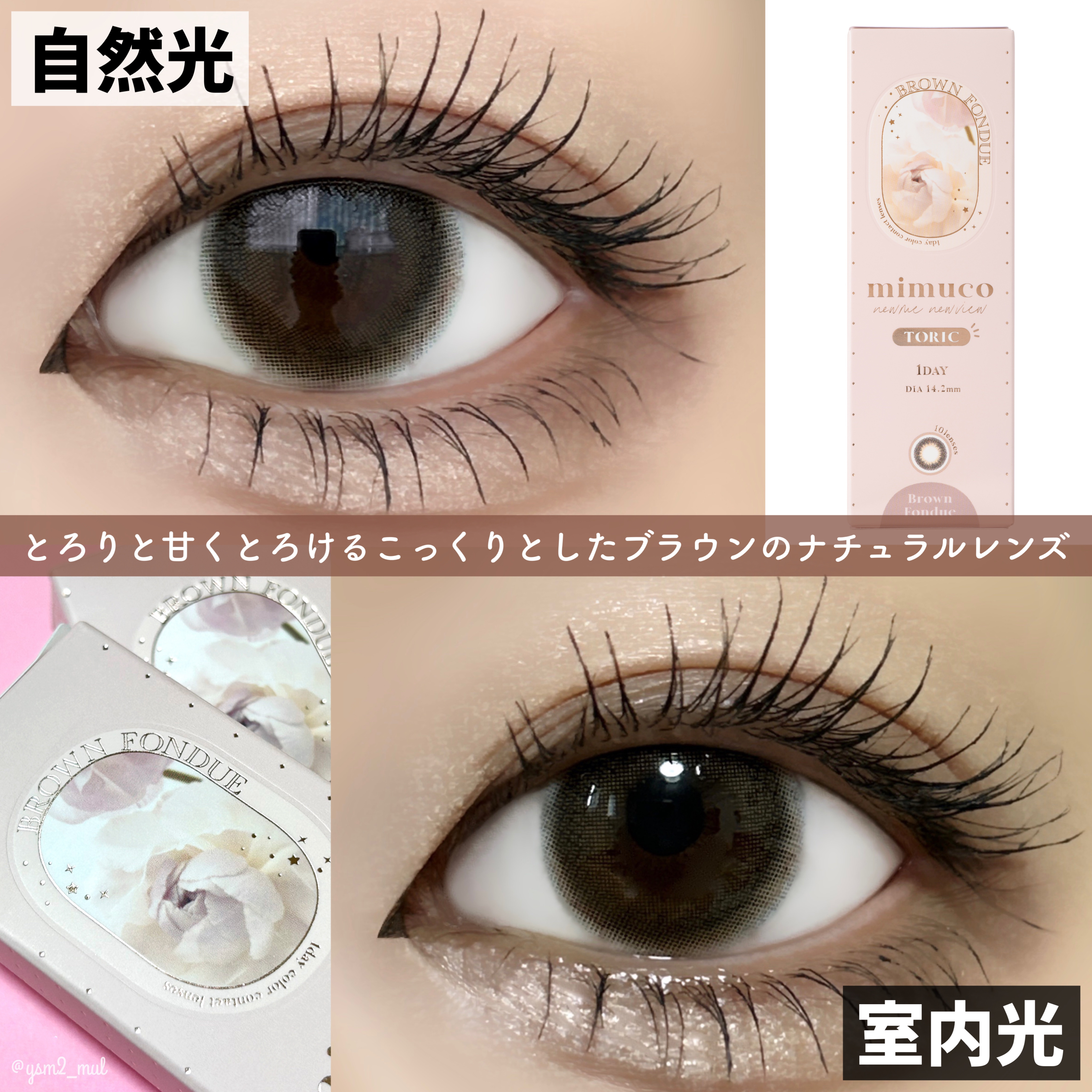 乱視用カラコンは種類が少ないというリアルな声をきき、おすすめの乱視用カラコンをかき集めてみました! シナモンブラウンは元々瞳の色が明るい人に見せてくれるカラーと自然なフチデザインの掛け合わせで瞳がキラキラして見える♡ デートトパーズはほんのりくすんだダークブラウンが垢抜け感と洒落感のある目元にしてくれる♡