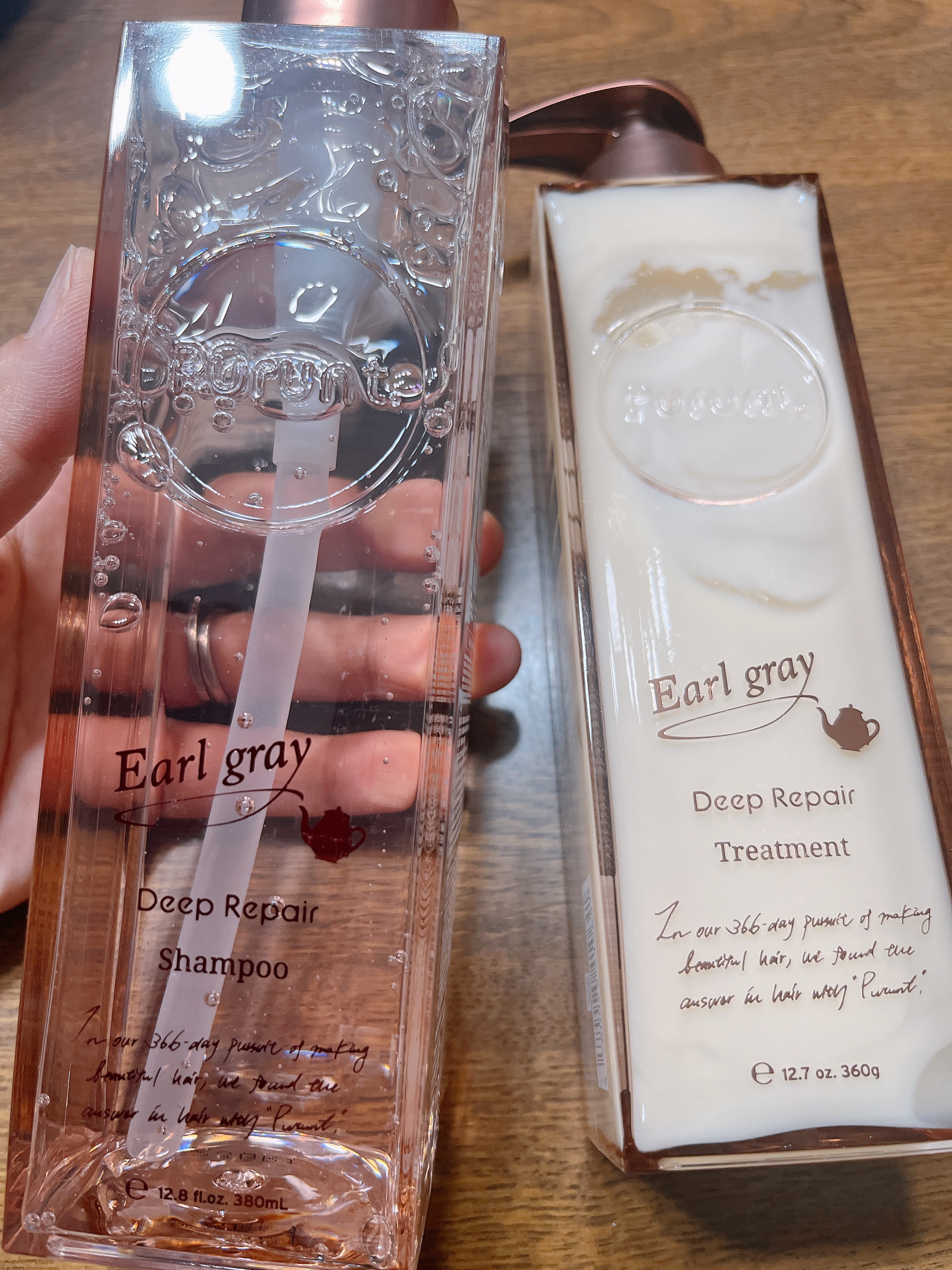 プルントディープリペアアールグレイ(シャンプー/トリートメント/ヘアミルク/ヘアオイル)前回販売された時買い損ねたから再販嬉しすぎた😭🩷 シャンプーは泡立ちが良くて1プッシュ多めに出てくれるのが嬉しい私は超乾燥毛の毛先痛みまくりだから、プルントなら2プッシュで問題なく泡立つよ‼️ とろ〜んとしたテクスチャーのオイル、乾かした後の髪につけたらしっとりまとまってツヤツヤにしてくれる‼️