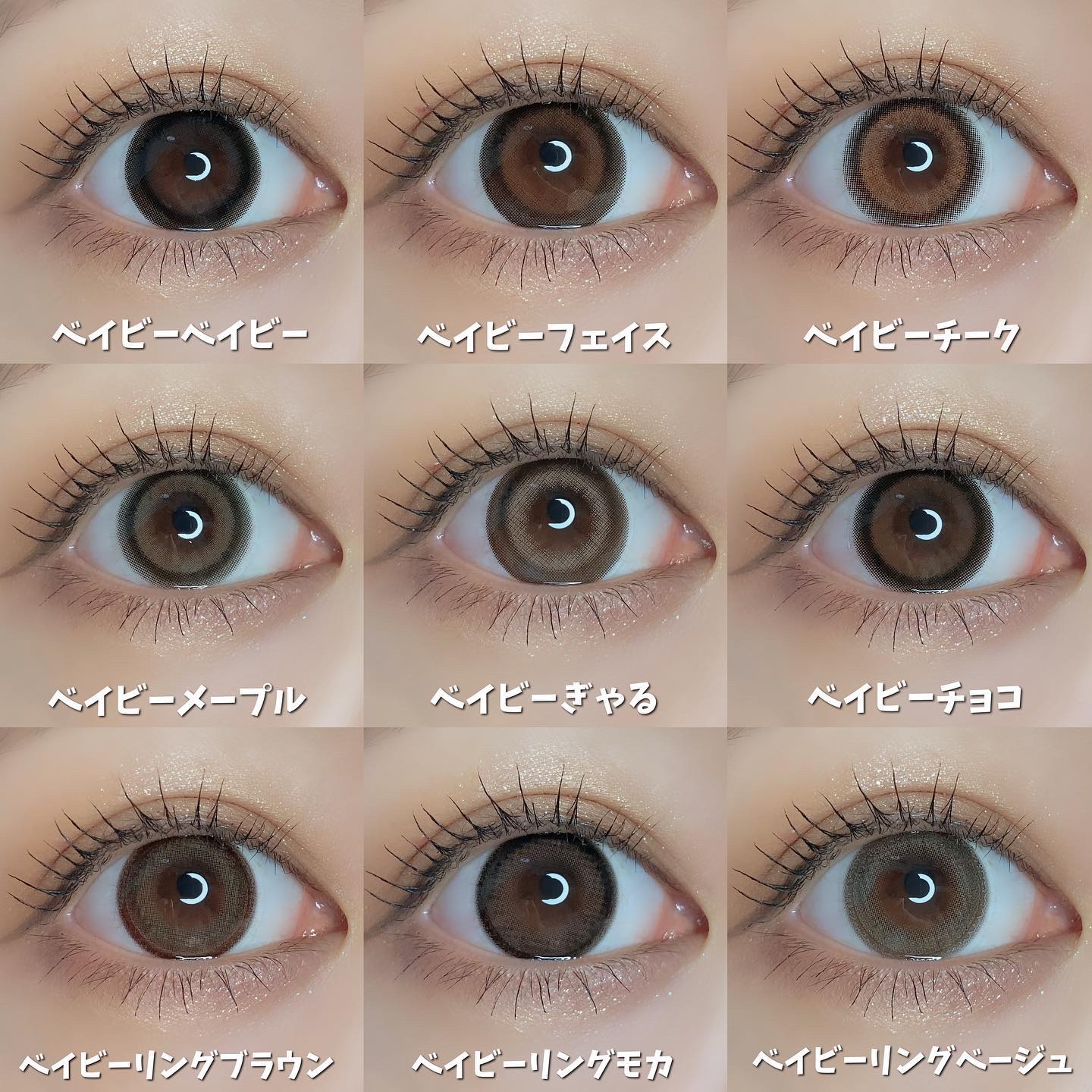 最近こういう #ちゅるん系カラコン にハマってて デイリー使いしやすいブラウン系のレンズを 9個選んでご紹介します😌 最後には裸眼も載せてるので、発色の参考になれば嬉しいです💓